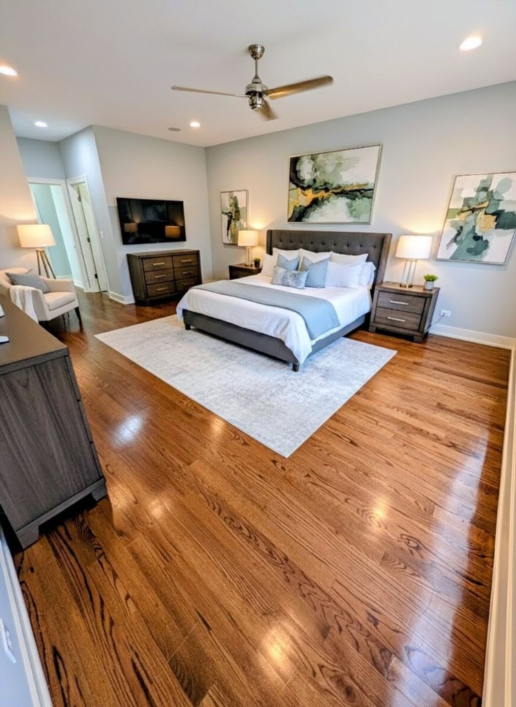 Newer-construction single-family home on a quiet, tree-lined block in Bronzeville. Thoughtfully designed 5BR/3.1BA layout with a bright, open main level-tall ceilings, wide-plank hardwoods, and a chef's kitchen featuring shaker cabinetry, quartz countertops, island seating, and stainless appliances. Retreat-worthy primary suite with walk-in closet and spa bath (oversized shower + double vanity). Three additional generous bedrooms, great storage, and a full-size laundry area. Flexible lower level offers a large family/rec room, fifth bedroom/office, and a full bath-ideal for guests, gym, or WFH. Outdoors you'll find a fenced yard with deck/patio and an attached 2-car garage. Dual-zone HVAC and low-maintenance exterior. Prime location near the 47th St Green Line, Lakefront Trail, parks, and Bronzeville dining-quick access to Lake Shore Drive and I-90/94; minutes to downtown, IIT, and Hyde Park. Move-in ready and an exceptional value for space, finish, and location.