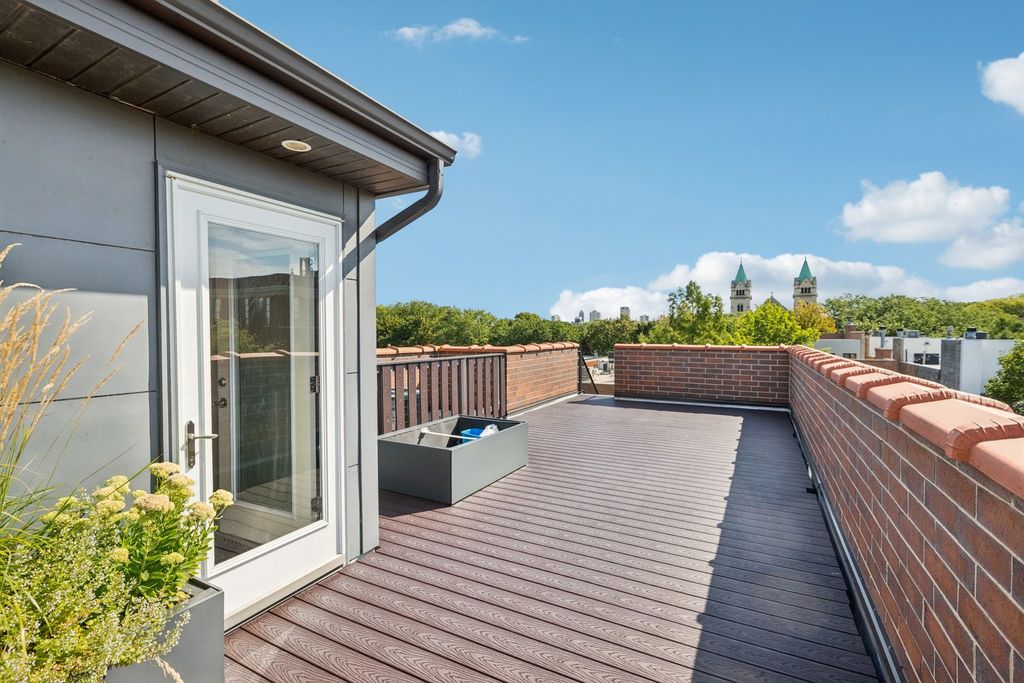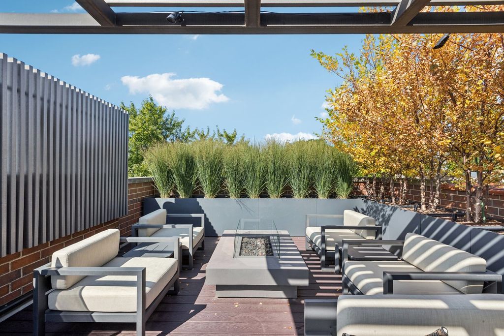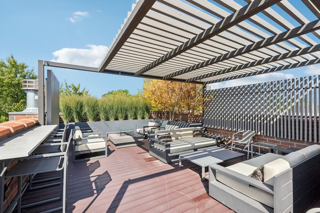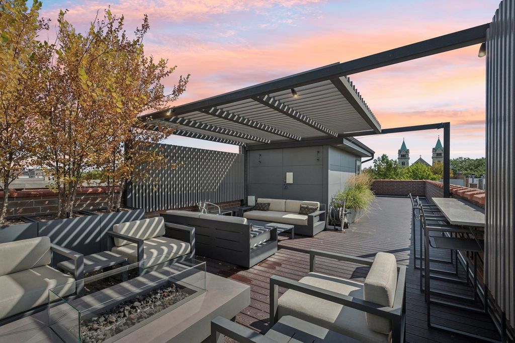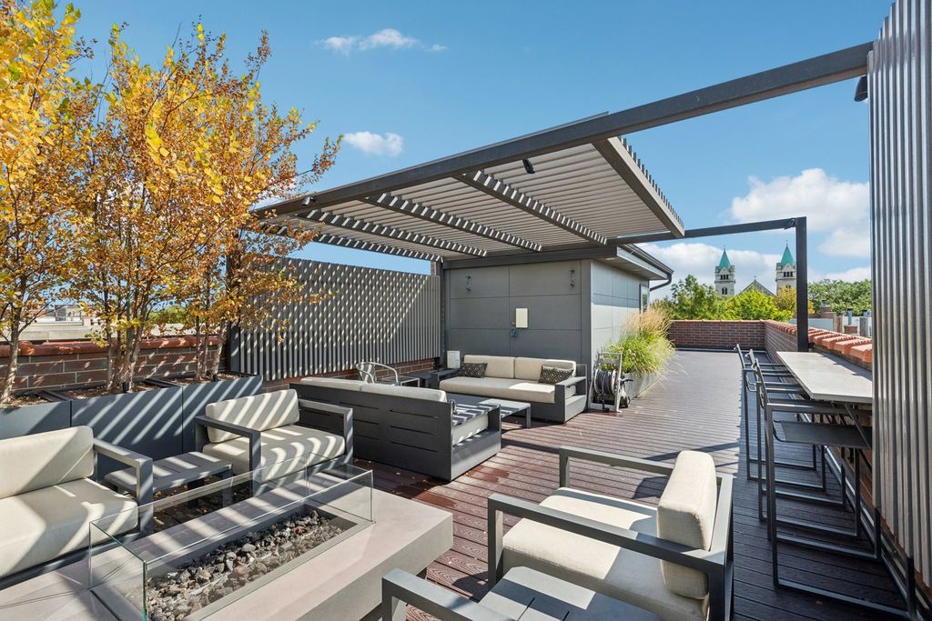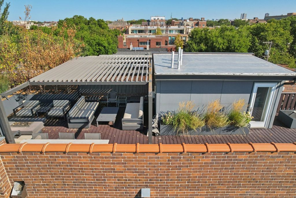 Welcome to 2307 N. Greenview! This refined 2-bedroom, 2-bath penthouse is situated in a boutique, newer-construction building within the coveted Oscar Mayer school district. It offers luxury finishes and rare outdoor space, and its deeper lot provides a larger-than-standard layout, complemented by concrete soundproofing between floors. This thoughtfully designed home features an expansive floor plan with rich millwork, tall coffered ceilings, and walnut hardwood floors. The bright and spacious living room comfortably accommodates a dining table and includes a gas fireplace, and a large front patio overlooking the treetops on Greenview Street. The living room seamlessly opens into a gorgeous white kitchen, which boasts quality Orchard Hill cabinetry (including glass-lit upper cabinets reaching the ceiling), a stainless Wolf Range with hood, an oversized Subzero refrigerator, an Bosch dishwasher, a built-in microwave, Quartz counters, pendant lighting, and a large double peninsula perfect for entertaining. Both bedrooms are generously sized. The king-sized primary suite offers a spa-like bath with classic white and gray marble subway tile, a double sink vanity, radiant heated floors, and a large walk-in steam shower with a rain shower head and body sprays, plus a walk-in closet. An interior staircase leads to a spacious loft area, equipped with a built-in dry bar featuring elegant quartz countertops, a convenient beverage fridge, and a large utility closet. The outdoor living spaces are truly unmatched, with front and rear terraces, plus a private rooftop deck showcasing sweeping city views. This oasis features low-maintenance Trex decking and is an ideal space for entertaining, complete with a custom pergola, planters with foliage, a fire pit, water access, and custom lighting, allowing the rooftop to be enjoyed day and night. Additional highlights of this home include in-unit laundry, surround sound speakers, garage parking, extra storage, and low HOA fees. This penthouse is located on a quiet, tree-lined, one-way block in Lincoln Park, offering a blend of everyday convenience and elevated style. Its amazing location provides easy access to all the city has to offer, including tremendous dining and nightlife in Lincoln Park, excellent shopping at North and Clybourn, and convenient public transit from both the Fullerton El stop and Metra. Additionally, you'll find easy access to I-90/94, a variety of grocery stores, and multiple great parks just moments away. This home boasts many impressive features, and I encourage you to schedule a private appointment today to experience it for yourself. Central Vac, RH deck furniture, TV, sonos speaker system, and Webster Grill included in sale.