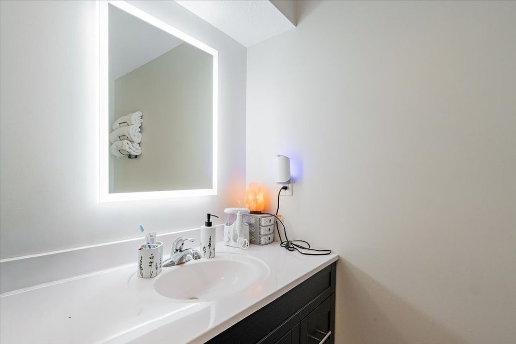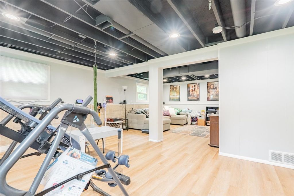 Completely renovated in February 2022 by Paul Davis Restoration, this home is move-in ready! Essentially rebuilt from the studs, the renovation included new drywall, trim, flooring, plumbing & electrical systems and much more. The finished lower level features a primary suite with an added egress window. Enjoy modern appliances (2022), a 2020 washer/dryer, and a basement dewatering system with an upgraded sump pump. Situated on a large corner lot with beautiful landscaping, including a water feature and dry creek bed. Deck freshly painted as of 9/2025. A must-see!