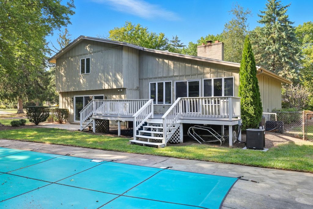 A beautiful combination of privacy and prestige, this well loved home is hitting the market! Located in the Pines, this home has a spacious floor plan, four good sized bedrooms, and additional living space in the lower level. This home has many great features like an oversized 2.5 car garage, 1st floor laundry, and 3 bathrooms. The layout has great flow for entertaining and main floor walks right out to a fantastic fenced in yard full of mature trees and features an inground pool.