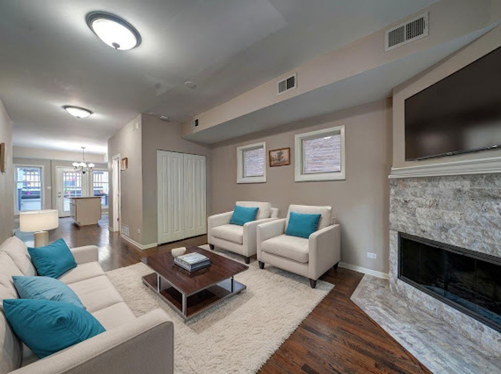This property offers a rare opportunity to own a spacious, move in ready home in one of Chicago's most sought after neighborhoods. Modern finishes, versatile layout and unbeatable location! Open concept on main floor, high ceilings and abundant natural light in the living room with fireplace, hardwood floors throughout. Modern kitchen with traditional flare, stainless steel appliances, open up to the outdoor deck, perfect or entertaining or just having a cup off coffee! Makes this a spectacular space. Parking no problem, detached garage space! Great sized primary bedroom, double closets and bath. Fully finished basement with family room and guest bed. Location is fantastic, surrounded by Bucktown's best dining, coffee shops, and boutique shopping. Steps from 606 trail for biking, running, walking. Blue line, Cta for easy downtown access and travel! Chicago charm at your door step!