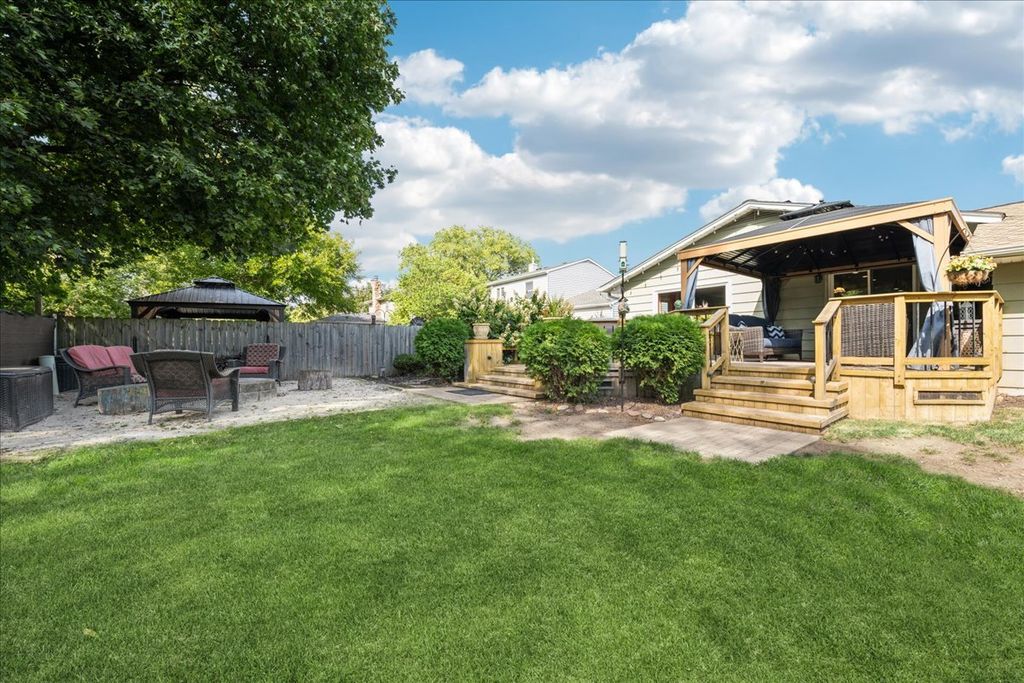 Welcome to this amazing ranch home! Updated kitchen, stainless appliances, beautiful cream cabinetry, long rectangular island that comfortably seats 3-4 people. Spacious pantry has a rich, espresso barn door that adds lots of charm to this space. Hardwood floor throughout, exactly what most buyers are looking for in todays market. The primary bedroom complete with updated bathroom that will wow the socks off you! Huge walk in shower, rectangular sloped modern sink is the perfect touch to the bathroom decor. You can access the fenced backyard, off the patio doors from the dining room to a cozy canopy space perfect for relaxing and reading a book, adjacent to large, decked dining area that steps down to backyard with a paver fire pit for chilly fall nights to roast a s'more or two. Added feature, no back yard neighbors! Enjoy entertaining in the basement where you will find a built in stove to the island bar, refrigerator and sink to host lots of parties for family and friends. Your guests will have a bathroom and additional bedroom for complete privacy. Close proximity to downtown Cary, Metra train for stress less commute to Chicago and other NW line suburban towns. Be a part of this lovely, small, quaint town of Cary.