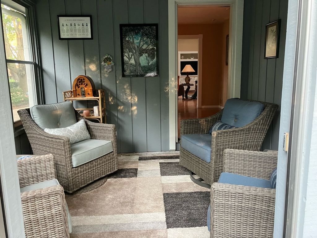 What a surprise! A must see! Vaulted ceilings, skylights, maple floors, spacious rooms, screened porch, + full basement. This meticulous ranch is tucked away on a quiet private lane. Enjoy 3 bedrooms, an open floor plan, bright sunny rooms, and gorgeous landscaping. This peaceful setting is close to town, shopping, and transportation. The foyer opens to the spacious but cozy living room w/skylights, stone fireplace and patio doors to the back yard. The dining room opens into the living rm and can accommodate all your dining needs. An eat-in Kitchen offers both a breakfast bar and table space + ample counters /cabinets, and a wine fridge. All 3 bedrooms are spacious and the closets are customized. The 2nd bedroom has a bay window. The large MBR has patio doors to the yard. The mstr bth has a double vanity, whirlpool tub, & sep shower. Enjoy beautiful mature landscaping, mostly perennials, surrounding the house. The snow plowing and street maintenance are shared by the 3 homeowners.