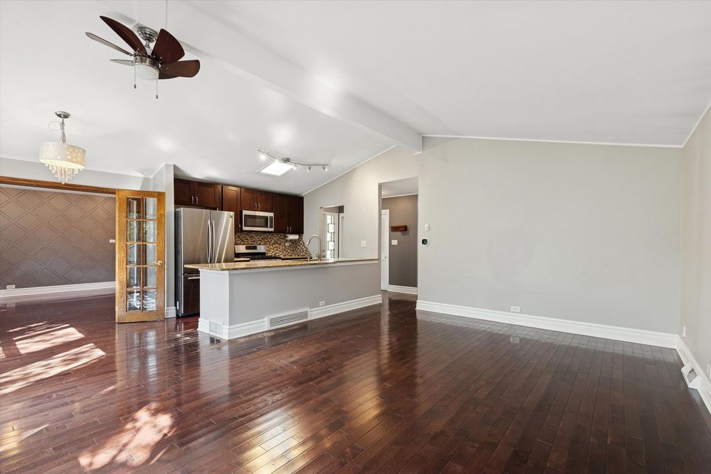 A thoughtfully remodeled, quality built home with modern finishes! Back on the market due to previous buyer's inability to sell their home.Imagine sun-drenched mornings under a dramatic cathedral ceiling. The airy, expansive feel in the main living areas complementing the updated kitchen with its custom cabinetry, granite counters that offer impressive breakfast bar seating and stainless steel appliances. Find great flex space through glass french doors - do you prefer an intimate family room or striking home office? All are just steps to the inviting brick paver patio and fully fenced yard that provide the ideal backdrop for gatherings, gardening, or quiet relaxation. Three bedrooms and two updated full bathrooms round out the main level living spaces. You'll appreciate the convenience of an attached garage and additional side apron parking. In addition to laundry space, the basement has room for your home gym or just plenty of room for storage! Low maintenance Brick and Vinyl siding, Furnace and A/C 2012. The front yard's pollinator garden is loved by butterflies! Unique plantings continue throughout the fenced backyard. Great location, easy access to main road, yet located on a low traffic, no thru street. Don't miss this blend of classic appeal and contemporary comfort!