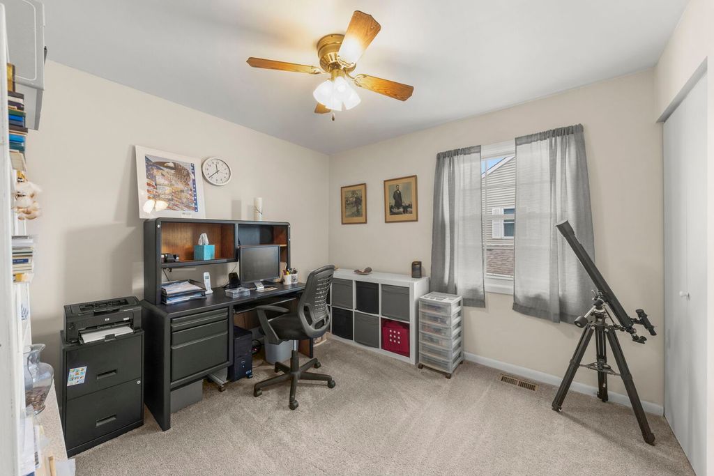 Tucked away on a quiet cul-de-sac, this tri-level home has been lovingly maintained by the same owners for over 40 years, showcasing true pride of ownership. The main level features a bright eat-in kitchen with a peninsula separating the dining area, ceramic tile flooring, and custom blinds. The kitchen flows into the living and dining rooms, both finished with wood laminate floors for easy care and timeless style. Just off the kitchen, an additional family room with carpeting offers a cozy retreat anchored by a wood-burning fireplace and built-in bookcases. Upstairs you'll find four bedrooms, including a spacious primary suite with a walk-in closet, double vanity, and walk-in shower. The second-floor bath has been beautifully remodeled, and new carpet runs throughout the upper level, complementing the neutral paint, six-panel doors, and plantation shutters. The lower level features a versatile recreation room with carpeting and plenty of space for gatherings, a playroom, or a home office. Off the kitchen, a charming three-season room opens to the expansive backyard-the true highlight of the property-perfect for relaxing, entertaining, or play. A convenient laundry room with custom vinyl tile flooring is located near the garage entry. Recent updates include a newer furnace, AC, and water heater; windows, and patio door; total roof replacement 2018 and a porch roof replacement in 2025; and newer appliances, including a Maytag washer and KitchenAid dishwasher (2023). An attached two-car garage completes the package. Close to award winning schools, shopping, dining, and I-80, this home offers a rare combination of comfort, thoughtful updates, and community in one of Frankfort Square's most desirable neighborhoods.