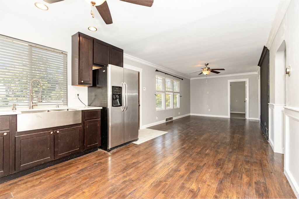 Welcome to this updated ranch home offering a perfect blend of modern finishes and functional space. From the moment you arrive, the inviting curb appeal and charming front porch set the tone for what's inside. Step into a bright living room with large windows that bring in plenty of natural light. The open floor plan flows seamlessly into the dining and kitchen areas, creating the ideal space for entertaining. The living room's accent wall adds character, while hardwood floors extend throughout the main living areas for a warm and cohesive feel. The kitchen features dark cabinetry, stainless steel appliances, a farmhouse sink, and ample counter space. Whether you're cooking for one or hosting friends, this kitchen is designed to impress. Three well-sized bedrooms provide flexibility for family, guests, or a home office. The full bathroom has been tastefully updated with a modern vanity, fixtures, and tiled finishes. Downstairs, the basement offers additional living and storage options, ready to be tailored to your needs - from a rec room to a home gym. Outside, enjoy a spacious yard, storage shed, and detached garage for extra convenience. This home combines charm, updates, and versatility - ready for its next chapter. Schedule your showing today!