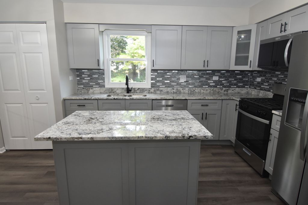 Like NEW: "Shows like a model" Professionally updated ! Oversized split level with sub/basement - Over 2500 sq. ft. of finished living space - Big bright eat in kitchen w/ all NEW custom cabinetry NEW granite counter tops and island - NEW laminate flooring flows thru out the entry foyer, kitchen and formal dining room - Stainless steel appliances too - Kitchen overlooks huge 400+ sq. ft. family room with NEW carpeting and custom corner fireplace - Family room patio doors lead to massive backyard deck - All NEW interior doors and trim, NEW lighting fixtures and ceiling fans thru out - All (3) bathrooms entirely NEW with NEW ceramic flooring and ceramic tub enclosures, All NEW vanities, toilets - Entire interior freshly painted - (4) Bedrooms all with New carpet and NEW ceiling fans - Master Bedroom with walk-in closet and private bathroom -NEW windows 2025 Hot water heater 2024, Furnace and central AC 2020 Fenced backyard, - Mature back of the yard trees add to the privacy - Immediate possession available - FHA, VA, Conventional all welcome -