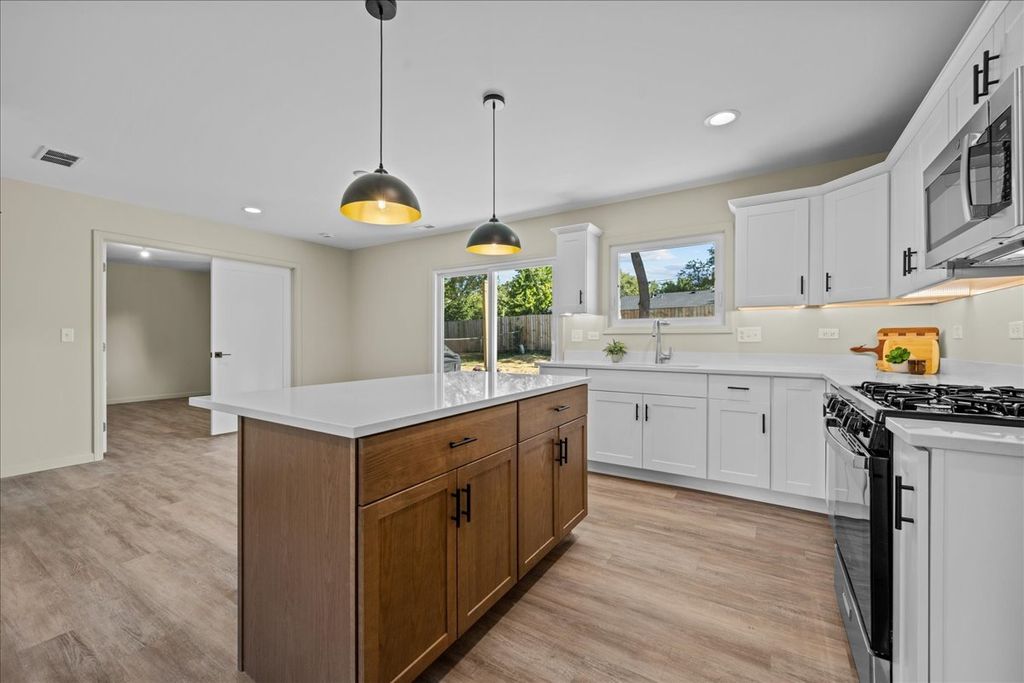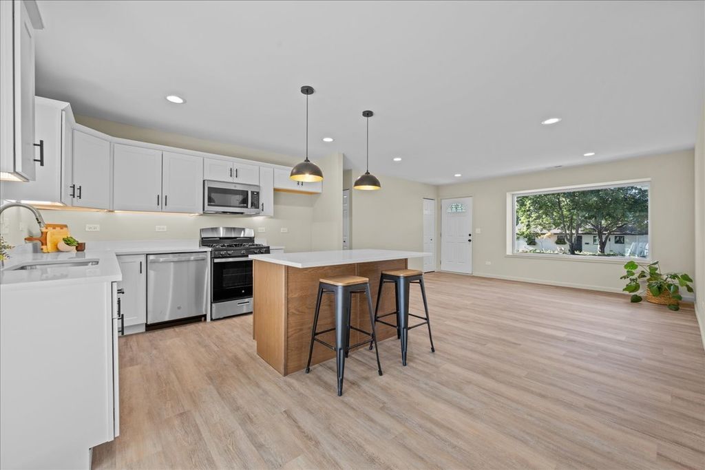 Welcome to this stunning completely rebuilt ranch home where EVERYTHING is brand new, yet nestled in an established neighborhood surrounded by mature trees. NEW... Roof~Gutters~Low E double hung Windows~Sliding Glass Door~Front and Interior Doors~Plumbing Lines~Gas Lines Added~Completely Re-wired with New Electrical Panel~Duct Work~Furnace~Air Conditioner~Hot Water Heater~Appliances including Washer/Dryer~Kitchen~Insulation~Garage Door~Garage Opener~Concrete Driveway~Concrete Patio. The thoughtful redesign features an open floor plan, highlighted by a beautiful kitchen with quartz counters and an island that offers additional seating. A large picture window fills the family room with natural light, creating a warm and inviting atmosphere. This home offers 4 bedrooms and 2 full baths, with the 4th bedroom set apart from the others-ideal as a private office, guest space, or additional living area. The oversized 2-car garage is wired for an EV car port and has plenty of additional room for storage, while the spacious patio is perfect for outdoor entertaining. Located on the east side of St. Charles, this home is walkable to downtown shops, dining, and entertainment.