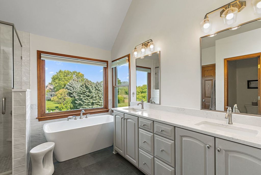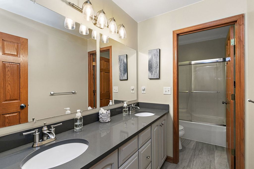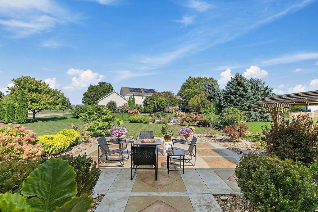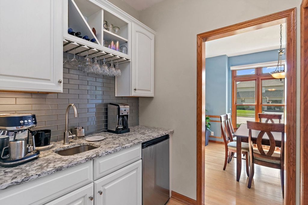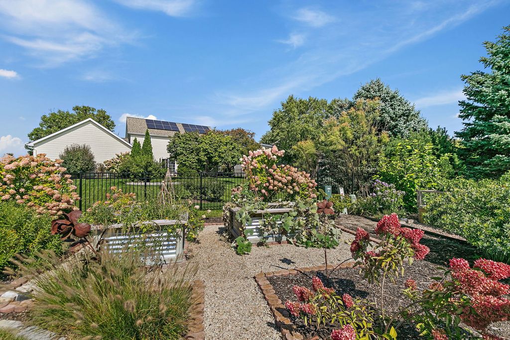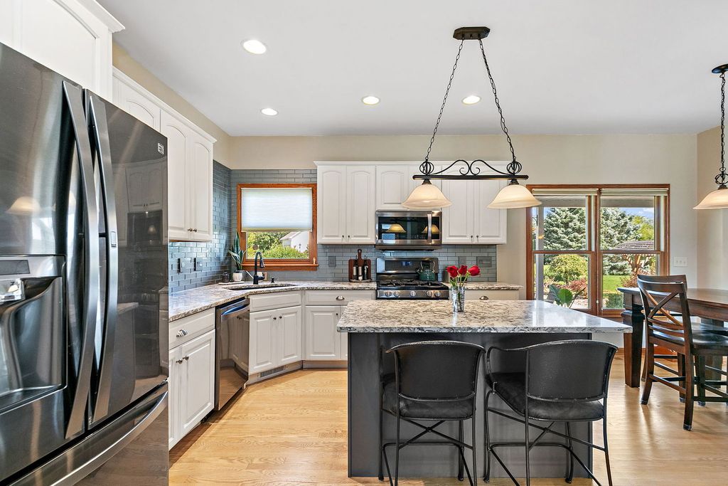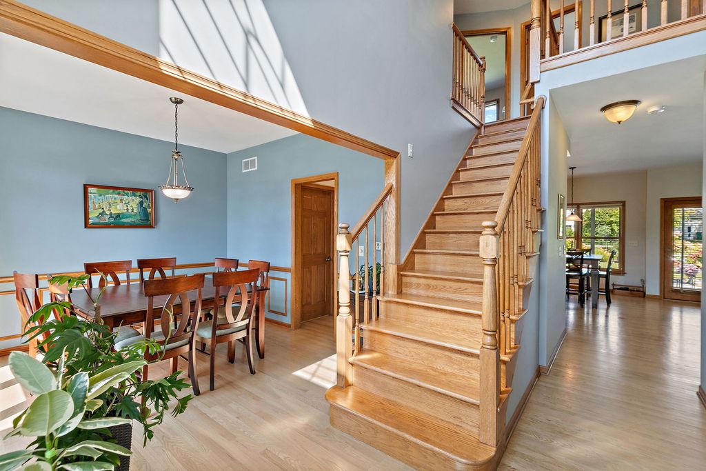 Welcome to this beautifully maintained 4-bedroom, 2.5-bath home with a 2.5-car garage and finished basement, ideally situated on a corner lot in the desirable Heron Creek subdivision. Step inside to an inviting open entry that flows seamlessly into the formal dining room, family room, and updated kitchen. The main floor boasts gleaming hardwood floors throughout, enhancing the elegance of each space. The kitchen is thoughtfully designed with a separate wet bar, island, pantry, and updated cabinetry featuring 42" upper cabinets with crown molding. Quartz countertops, a subway tile backsplash, and stainless-steel appliances complete this stylish and functional space. The adjoining family room is the perfect gathering spot, featuring a cozy wood-burning fireplace with an oak mantel and view to the beautiful backyard. A well-equipped laundry room offers a laundry shoot, wash sink, shower, and built-in coat rack for added convenience. Upstairs, the spacious master suite is a true retreat with abundant natural light, dual closets, and an updated bath showcasing double sinks, a soaker tub, and a beautifully tiled shower. Three additional generously sized bedrooms, a second office, and a hall bath with double sinks and a separate tub/toilet room complete the upper level. The finished basement extends the living space with a workout room, large family area, and recreational room-perfect for entertaining or relaxing. Step outside to your private backyard oasis, featuring a covered patio, stamped concrete patio, raised planting beds, and a hammock stand-all within a fully landscaped setting. This home offers the perfect combination of comfort, style, and functionality in a sought-after neighborhood. Don't miss the opportunity to make it yours!