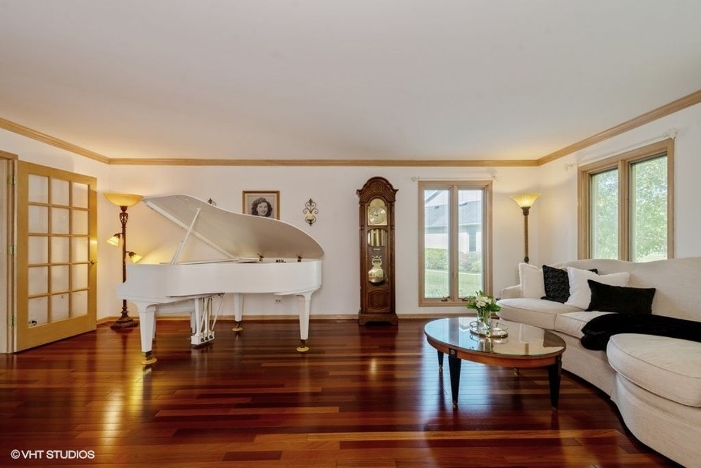 Welcome to 307 Anne Ct, a beautifully appointed 5-bedroom, 3.5-bath home tucked at the end of a quiet cul-de-sac in desirable Prospect Heights. Set on a professionally landscaped half-acre lot, this expansive residence offers over 3,000 square feet of refined living space with an open layout ideal for both entertaining and everyday living. The main floor impresses with Brazilian cherry hardwood flooring, a spacious formal living area, and a sun-drenched family room that flows effortlessly into a gourmet kitchen featuring porcelain tile flooring, a Wolf range, high-end stainless refrigerator, elegant finishes, and copper fixtures that add warmth and character throughout. Upstairs, the oversized primary suite includes a spa-style bath with a Jacuzzi tub and a generous walk-in closet. The fully finished basement adds valuable recreation space with room for entertaining, working out, or relaxing, and features an in-law arrangement for added versatility. Outdoors, enjoy a sprawling deck overlooking a wide open backyard-perfect for gatherings, play, or peaceful mornings. The home is minutes from expressways, shopping, dining, and conveniences, yet feels like a private retreat. Recent improvements and upgrades include a new roof and gutters, freshly painted interior (2024), smart thermostats, smart sprinkler system, and a whole-house water filtration system with reverse osmosis. Additional highlights include a 3-car garage, battery backup for the sump pump, deck stained in 2023, and updated appliances including a fridge (2023) and water heater (2022). Thoughtfully maintained and move-in ready, this home offers a rare combination of privacy, space, and timeless style.