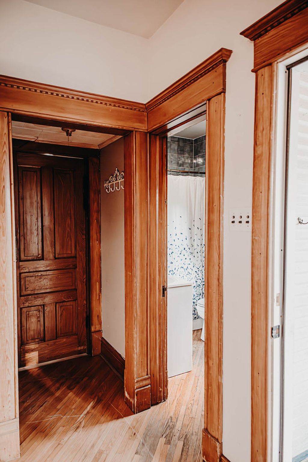 *SELLERS OFFERING A HOME WARRANTY TO COVER MAJOR MECHANICALS* NOTE: Virtually staged photos are AI edited to help with visual potential changing paint & light fixtures!! Step back in time with this beautifully preserved historic charmer in the heart of town! This home is filled with character, featuring original hardwood floors, rich wood trim, and stunning stained-glass details that showcase its timeless craftsmanship. Inside, you'll find spacious rooms with tall windows flooding the space with natural light, a cozy living room with a white-painted fireplace, and classic pocket and French doors that add both elegance and privacy. The dining room's bay window creates the perfect backdrop for gatherings, and the updated kitchen offers solid wood cabinetry, open shelving, and stainless-steel appliances, blending old-world charm with modern function. Whether you love the character of historic homes or are searching for a property with potential to make your own, this home offers the perfect canvas! Also offering the opportunity to create an additional bedroom on the main floor by simply swapping out the doors! Enjoy being just blocks from all the small-town amenities that make Market Street living so desirable. Bring your vision and make this timeless piece of history your next chapter!