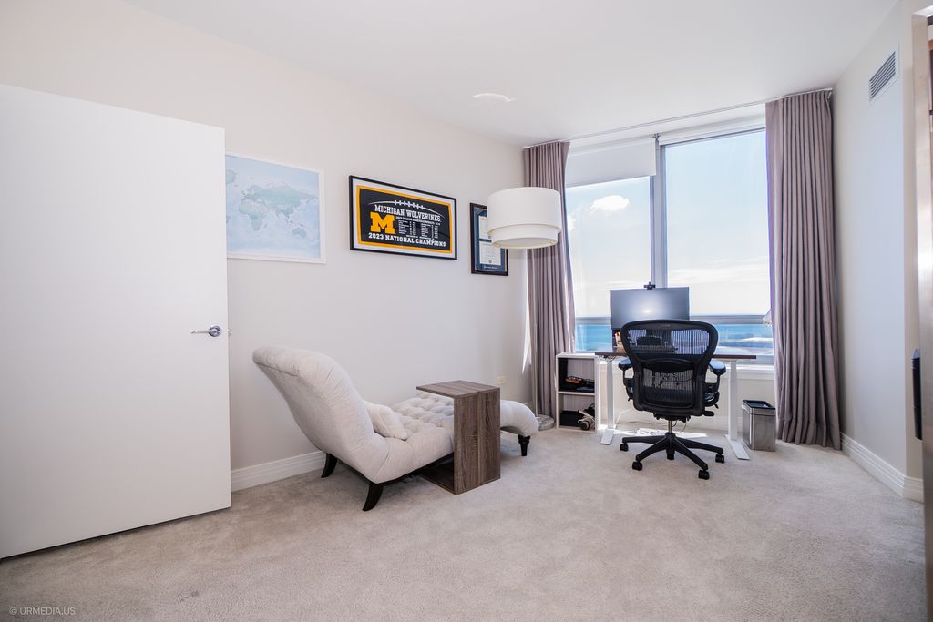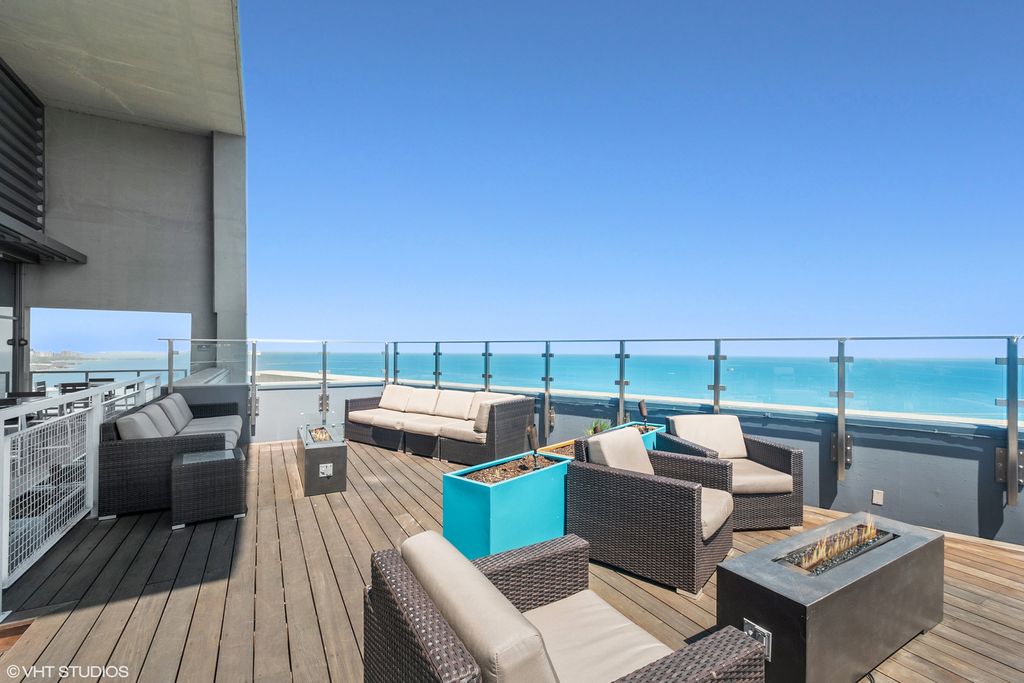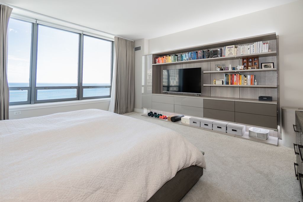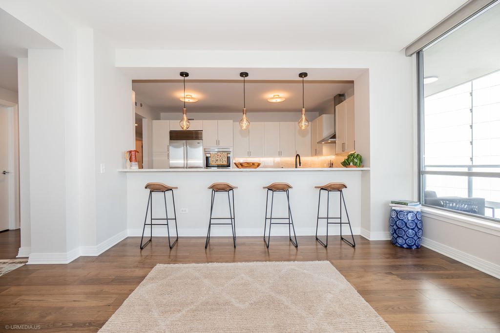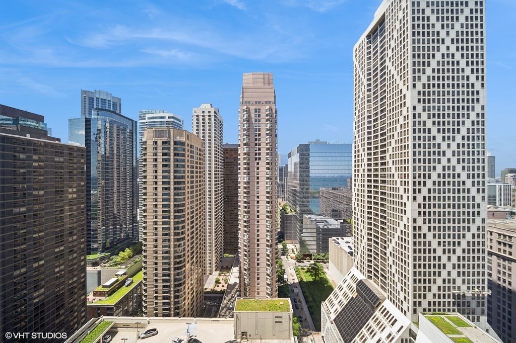 Amazing opportunity to own a showstopping 3-bedroom, 3-bath corner residence with over 2,500 sq ft of beautifully renovated living space in one of Chicago's premier full-service buildings. Perfectly perched on the 19th floor, this home offers breathtaking panoramic views of Lake Michigan from every room. Designed for both everyday living and elegant entertaining, the expansive open-concept floorplan features wide-plank hardwood floors, oversized windows, and a sun-drenched living and dining area that flows effortlessly into a designer kitchen. The chef's kitchen is a standout, complete with custom two-tone cabinetry, professional-grade stainless appliances, quartzite countertops, a farmhouse sink, and a spacious breakfast bar. The luxurious primary suite offers a serene retreat with stunning lake views, an oversized walk-in closet, and a spa-quality bath with dual vanities, soaking tub, and frameless glass shower. Two additional bedrooms-each with generous closet space and their own adjacent or ensuite baths-provide flexibility for guests, family, or a private home office. A lake-facing balcony, large laundry room with storage, custom built-ins, and thoughtfully updated finishes throughout complete this turnkey home. Located in a full-amenity building with 24-hour door staff, state-of-the-art fitness center, two rooftop sun decks, business center, dry cleaners, and heated garage parking available for purchase. all just steps from the lakefront path, Navy Pier, and world-class shopping and dining in Streeterville.