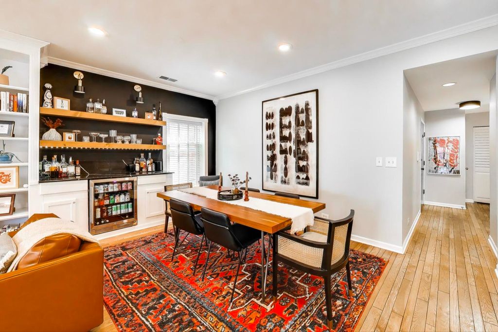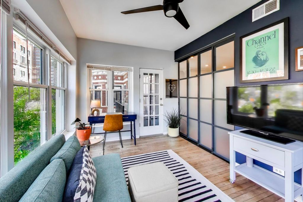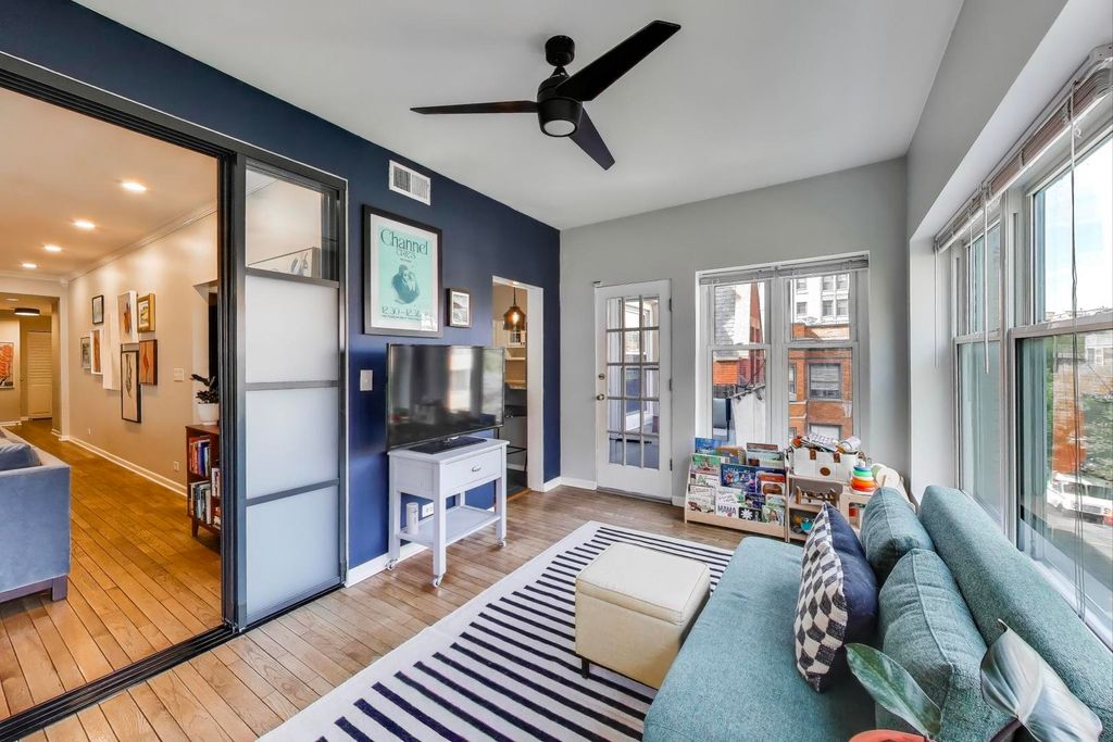 Fabulous top floor 2 bedroom plus den in unbeatable SE Lakeview location. This one checks all the boxes: central air, in-unit laundry, 2 private outdoor spaces, and garage parking. Plus it has that winning combination of vintage charm and modern updates. Spacious dining room / living room with gas fireplace, built-ins, bar with beverage fridge and crown molding. Custom sliding doors to den, which makes a terrific flex space: home office, guest room, kiddy play space. Not one but two balconies! And they're conveniently located off the den close to the kitchen and living room. Updated kitchen with breakfast bar, white cabinets, granite counters, stainless steel appliances. Both bedrooms are an excellent size with generous closet space. Both the en suite primary bath and the hall bath are updated. Hardwood floors throughout. Well-maintained building and well-run association with very reasonable assessments. Walk-to-everything location: the lake and park, the stores and restaurants along Broadway, Trader Joes, the express bus and the el. And for dog lovers (it's a pet-friendly building), the upcoming 25,000sf, $950K dog park near the Diversey driving range. What a great place to call home!