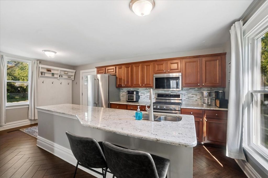 This ADORABLE 2 bedroom, 1 bath charmer, located right in the heart of Batavia, is an absolute 10 with modern updates, stunning decor, 2 car garage, and large corner lot! ~ Light, bright living room with upscale laminate flooring (new in 2016) ~ Gorgeous kitchen has huge island with breakfast bar, granite countertops, beautiful cherry cabinetry, custom tile backsplash, and upgraded stainless steel appliances (all new in 2024) ~ Roomy first floor full bath ~ Darling front porch ~ 2 spacious 2nd floor bedrooms with ceiling fans ~ Functional basement with laundry ~ Updated lighting throughout ~ White doors and trim throughout ~ Oversized detached 2 car garage with opener ~ Massive driveway to accommodate multiple vehicles, RV, boat, ATVs, etc. ~ New gutters/downspouts 2022 ~ New carpeting 2021 ~ New washer 2020 ~ New roof (house and garage) 2018 ~ New A/C 2016 ~ New brick paver patio and walkway 2016 ~ New windows 2014 ~ New furnace 2014 ~ New dryer 2014 ~ New garage door opener 2014 ~ Top notch schools ~ Walking distance to bike paths, Fox River, several parks, numerous restaurants and shops, farmer's market, community events, and all super quaint downtown Batavia has to offer ~ Easy I-88 access ~ 10 minute trip to Metra commuter station ~ IMPROVEMENTS GALORE, HUGE YARD, STELLAR LOCATION, MOVE-IN READY.....FANTASTIC VALUE IN THE SOUGHT-AFTER TRI-CITIES...DON'T MISS THIS RARE OPPORTUNITY!