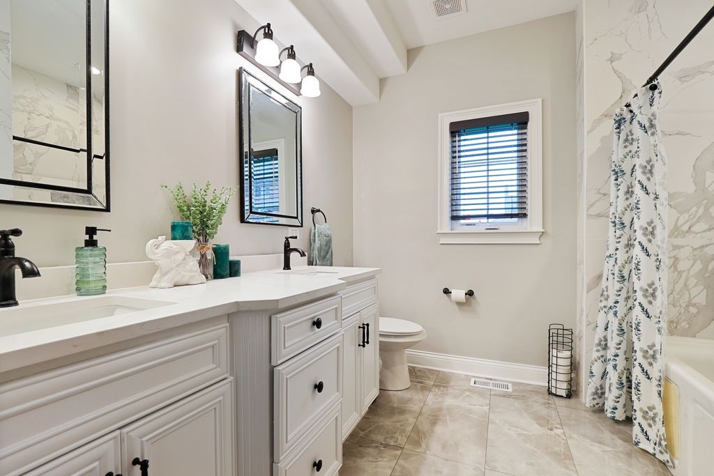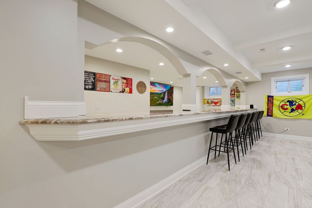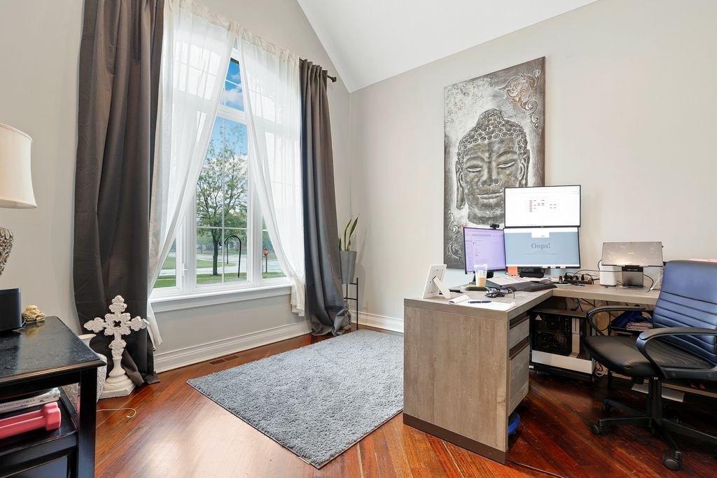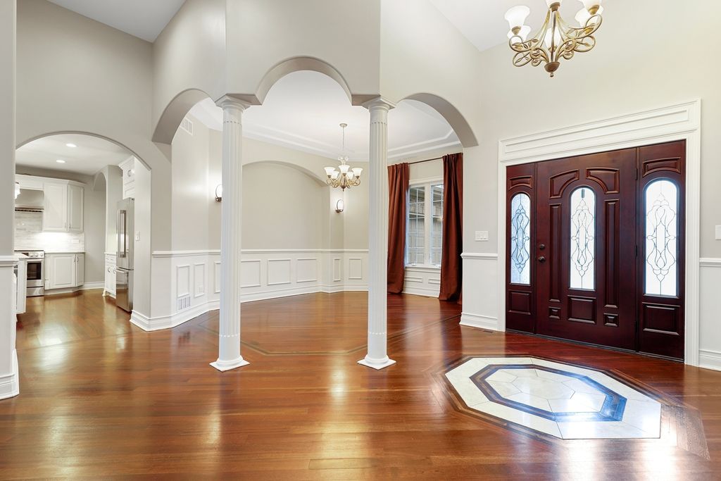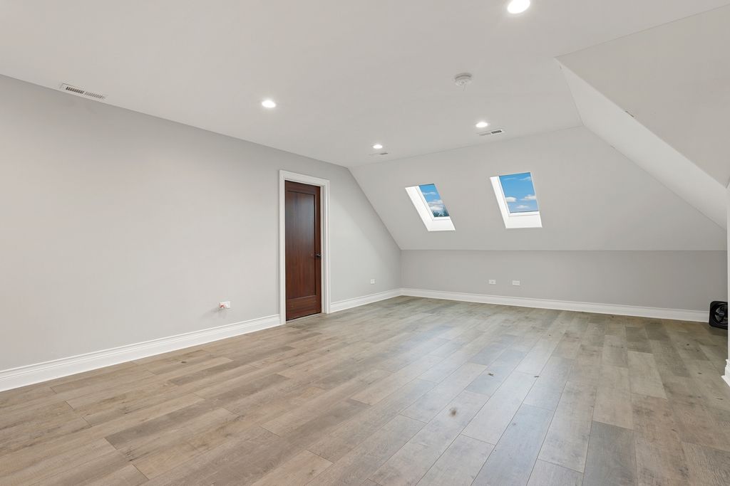 Welcome to this stunningly renovated 1.5-story luxury home in the highly desirable Lighthouse Pointe of Frankfort, nestled within the award-winning Lincoln-Way East High School district. Designed with elegance and functionality in mind, this home boasts an open and airy floor plan with soaring ceilings and abundant natural light throughout. The main living area is anchored by a gorgeous two-story fireplace (with a new insert installed in 2024), seamlessly flowing into the open-concept kitchen-a chef's dream featuring white cabinetry, new quartz countertops, high-end stainless steel appliances, and a charming eat-in area with coffered ceilings. A spacious formal dining room offers the perfect setting for elegant entertaining. Retreat to the incredible first-floor primary suite, complete with dual walk-in closets and a luxurious marble bathroom featuring a newly tiled shower with body sprays, jacuzzi tub, and high-end finishes. Two additional bedrooms on the main level provide flexibility for guests with an additional den to provide office space, playroom or formal sitting room. Upstairs, a large loft offers a great flex space, while a private en suite bedroom with its own full bath adds even more comfort and convenience. The entire main level features newly refinished hardwood floors with custom inlays, while all five full bathrooms throughout the home have been fully remodeled to reflect modern luxury. First-floor laundry room, all new solid mahogany doors, new wainscoting and trimwork, custom tray ceilings, and new plumbing fixtures throughout. All new lighting fixtures, including Lutron Caseta smart lighting system. Additional highlights include a gigantic fully finished basement with 9-foot ceilings, fireplace, and two bar areas (one with wine fridge and wet bar PLUS another custom bar in the front)-ideal for entertaining. A huge storage room in the basement for all your organizational needs. New Culligan full-home water filtration system with reverse osmosis (2024). Two new furnaces and A/C units and a new water heater (2023). Professionally landscaped backyard retreat, perfect for relaxation or gatherings. This home offers an unparalleled blend of timeless craftsmanship and state-of-the-art updates. A true must-see for those seeking luxury, space, and top-tier amenities in a premier location. Schedule your private showing today; this one won't last long!