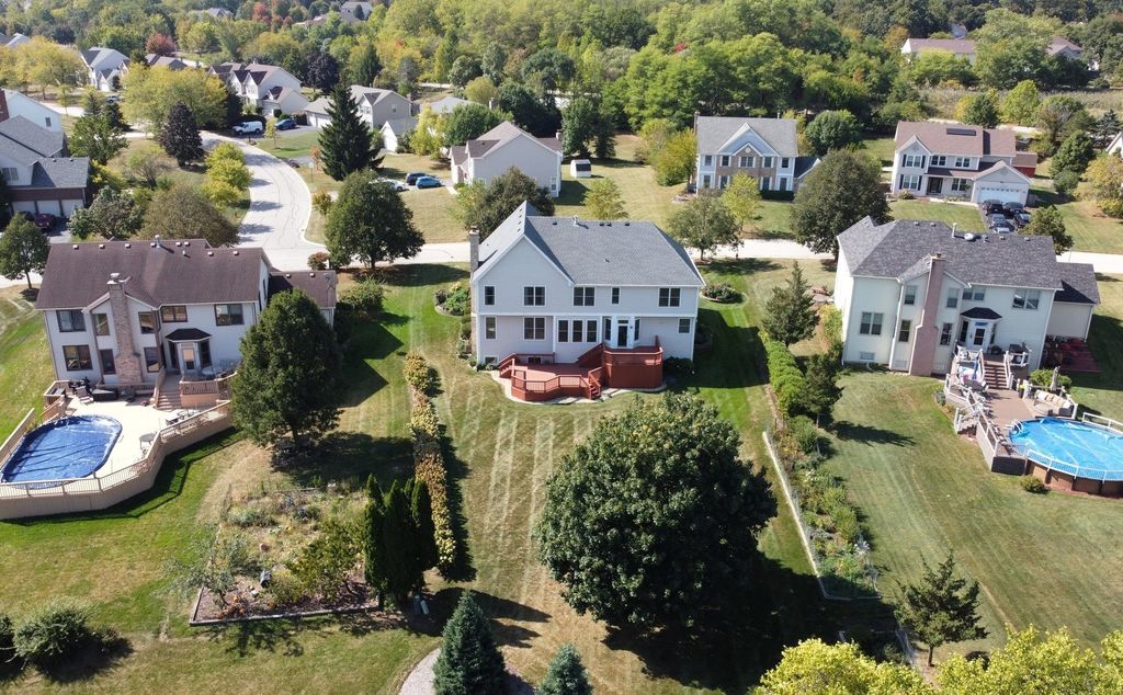 Stunning 5 bedroom, 3.5 bath, full finished basement and 2 car garage oversized home! Ideal location near 59 Rd, shopping centers, restaurants, parks and I-90 expressway. Featuring soaring 9' ceilings and a blend of porcelain tile, this spacious layout is both functional and beautiful, with over 4,500 sq ft of finished space including full finished basement. The main floor offers multiple living areas including living, dining, den and family room with a fireplace. Patio door opens to a beautiful deck and a stunning large backyard to enjoy peaceful outdoor living. The kitchen is the heart of the home - designed for entertaining with a island, granite counter tops, pantry, stainless-steel appliances and ample table space with direct access to the outdoors. Large size bedrooms, a full laundry area and 3 full baths (one in the basement. The luxurious primary suite features tray ceilings, dual walk-in closets, and a massive en-suite bath with cathedral ceilings, skylight, whirlpool tub, separate shower and dual vanities. The 5th bedroom is oversized with a walking closet. The full and large finished basement is perfect for a huge workout room, and tons of storage or creative space. Updates include: High-efficiency furnace, AC, Roof, water heater and top of the line windows and doors. This is a 10 out of 10 home