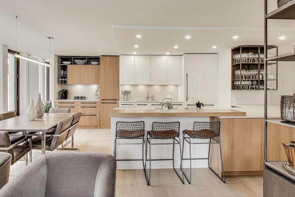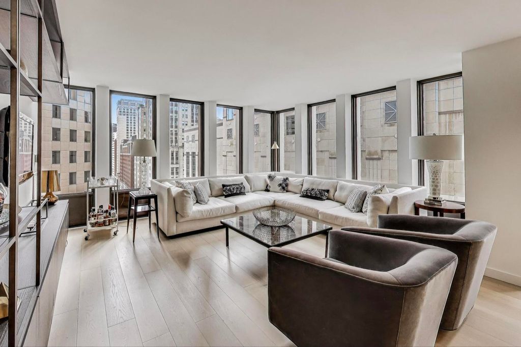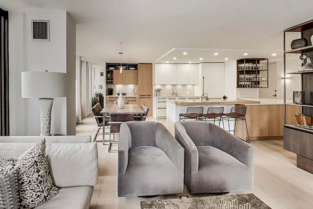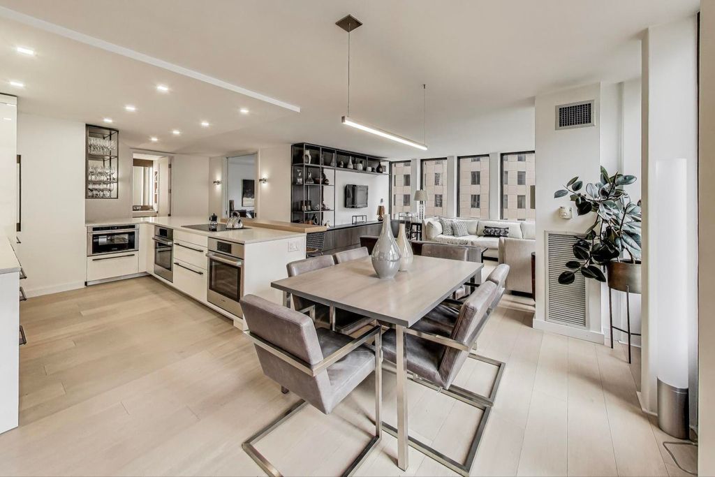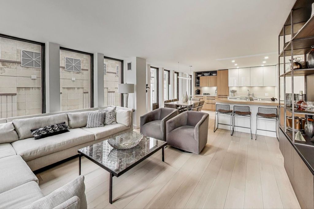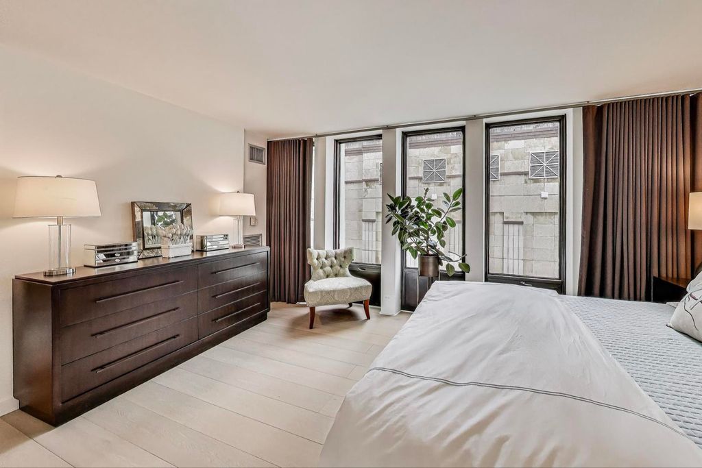 Welcome to this luxurious, fully furnished contemporary 1,675 s.f. condo featuring 2 bedrooms plus an office, and 2 full bathrooms, located in the perfect Gold Coast location steps off Michigan Avenue and the best stores and restaurants. This combined unit spans 1,675 square feet, and was a total gut renovation and barely lived in. Boasts elegant wide-planked oak hardwood floors that flow seamlessly throughout the spacious 6-room layout. The home is bathed in natural light with eastern and southern exposures. The spacious living room includes Snaidero custom wall unit cabinetry with east lake views down Walton Street. The open chef's gourmet kitchen is a culinary dream, featuring Snaidero custom lacquered wood and oak cabinetry with white quartz countertops, a cantilevered solid oak wood breakfast bar, a pantry, coffee station, 2 Bosch ovens, microwave, induction cooktop, and SubZero refrigerator. The open kitchen design offers effortless entertaining with tons of additional built-in cabinetry complemented by recessed lighting and exquisite sconces and fixtures. Primary bedroom suite is a sanctuary of comfort, featuring custom walk-in closet and full wall of blackout drapes and ensuite bathroom. The luxe bathroom has large format porcelain tiling, Robern medicine chests, dual sinks with custom vanity with quartz countertops. The second bedroom has double glass pocket doors with draperies on both window wall and glass doors. An additional home office off the primary bedroom and dining room, provides a versatile space for work or relaxation, complete with a built-in wood desk, a full sized wine refrigerator, beverage refrigerator and custom cabinetry. Work by day and entertain at night! Enormous laundry room has an in-unit LG washer and dryer and tons of storage. Building amenities include common storage unit, fitness room, bike room, a resident's lounge, an outdoor pool, and a common sundeck. A full-time doorman and newly renovated elevators access ensure both security and ease. This is offered fully furnished with modern finishes and trendy furnishings, offering a sophisticated city lifestyle in one of Chicago's prime locations steps from the Magnificent Mile.