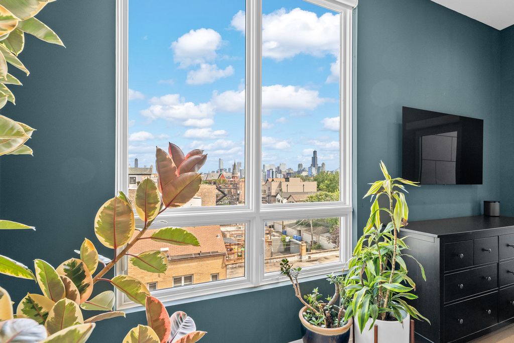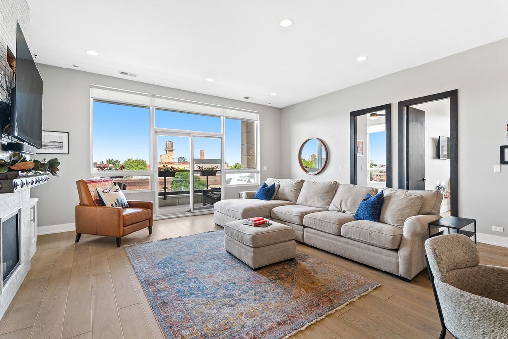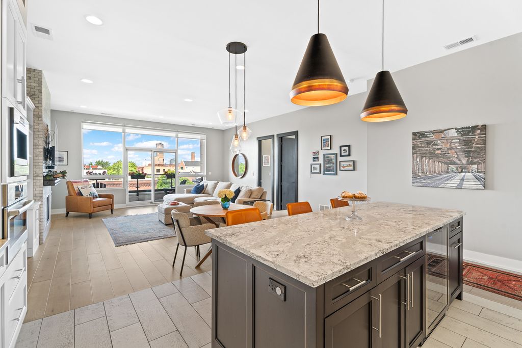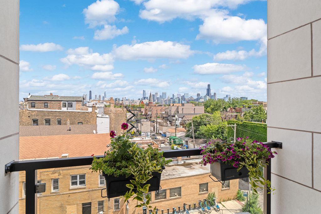 Sophisticated penthouse living with breathtaking skyline views defines this bright, corner 3-bedroom, 2-bath home in a newer boutique elevator building in Ukrainian Village. Enjoy large windows with unobstructed views of the Chicago skyline from nearly every room. Every detail has been thoughtfully curated, from the expansive open floor plan to the three outdoor spaces, including a large rooftop deck with panoramic city views. Three generously sized bedrooms provide ample accommodation, each equipped with custom closets and bathed in natural light with skyline views. The spacious living and dining area features 10-foot ceilings, wide-plank hardwood floors, a marble-surround fireplace, and custom built-ins. The chef's kitchen balances performance and design with Italian cabinetry, quartz countertops, a glass backsplash, and premium stainless steel Wolf appliances, including Sub- Zero refrigerator, stove, dishwasher a built-in coffee/expresso station, wine fridge for all your drinks, and an oversized island perfect for effortless entertaining. The primary suite offers a serene retreat with skyline views, a private terrace, a custom large walk-in closet, and a spa-like bath featuring heated floors with Porcelanosa tile, a floating double vanity, and a walk-in rain shower. Two additional spacious bedrooms continue the theme of light and view, each with expansive windows capturing Chicago's iconic skyline and built-in floor to ceiling custom closets. Additional highlights include designer lighting, custom window treatments, a full laundry room, ample storage, and an attached heated garage space with EV charger. Perfectly positioned near West Town and Ukrainian Village's best dining, shopping, and nightlife, this exceptional home combines elevated urban design with some of the city's most spectacular skyline views. Be part of a vibrant and sought after community.