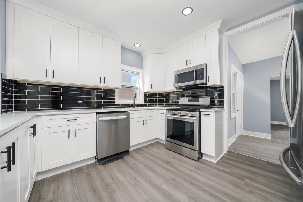 Welcome to this stunning, fully rehabbed gem in Maywood. This home features 4 bedrooms and 3 full bathrooms, plus full finished basement, 2 car garage plus driveway. Home has been beautifully updated, blending modern elegance with timeless charm. The main floor features gleaming hardwood floors throughout the living and dining, creating a warm and inviting atmosphere. Upstairs, you'll find durable, stylish laminate flooring in the spacious bedrooms, offering both beauty and practicality. Brand new finishes, ample space, and a prime location, Schedule your appointment today!