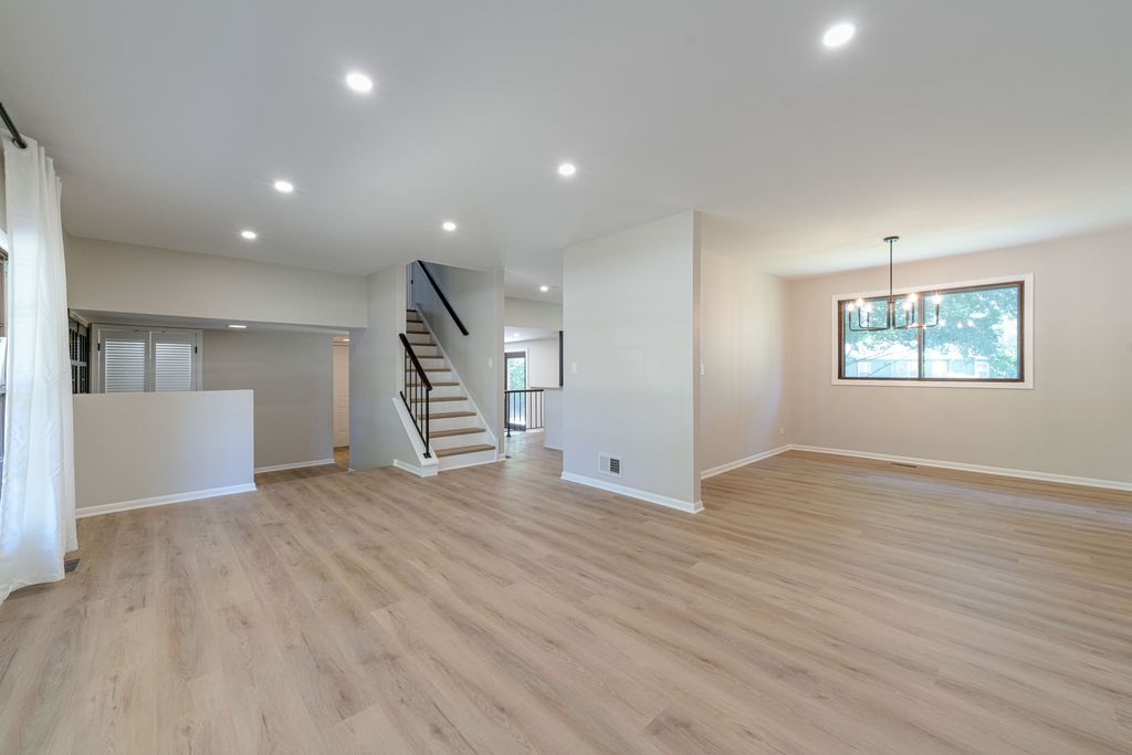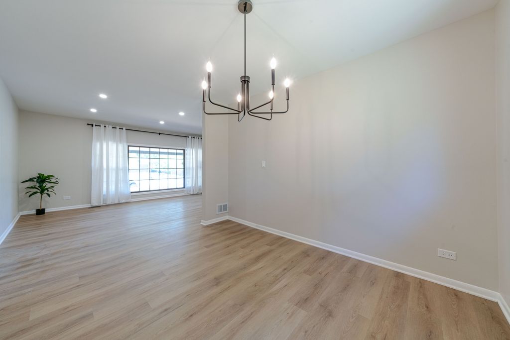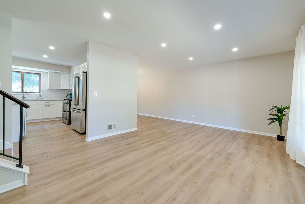 MOVE-IN READY & COMPLETELY REMODELED IN GREENTREE-WITH SOUGHT-AFTER CHOICE ZONE HIGH SCHOOLS! Start your day on the charming front patio with brand new brick pavers, paired with a matching walkway-the perfect spot for a quiet morning coffee. Head inside and you're greeted by a welcoming foyer with a large coat closet, setting the tone for the stylish updates that unfold throughout. Fresh paint in today's most popular palette, brand-new luxury vinyl flooring, brand-new plush carpet, designer fixtures, brand new A/C installed July 2025, and remodeled spaces at every turn make this home shine. The sun-filled living room flows seamlessly into the adjoining dining room-an ideal setup for hosting friends or enjoying family dinners. Next, head into the stunning kitchen, where white cabinetry, quartz countertops, a subway tile backsplash, and a center island with breakfast bar seating create a bright and functional hub. Open sightlines into the family room keep conversations going, whether you're prepping meals or keeping an eye on the kids. Unwind in the family room around the striking floor-to-ceiling brick fireplace with raised hearth-perfect for cozy movie nights or game nights. An exterior door opens to a backyard built for outdoor fun, featuring a spacious patio and a full fence for added privacy. Back inside, an updated half bath rounds out the main level. When it's time to call it a night, head upstairs to the primary suite featuring dual closets and a private updated bath. Two additional bedrooms share a second updated full bath with a dual sink vanity and tub/shower combo. The city-loft-inspired basement offers a large rec room for endless possibilities, while the unfinished area provides excellent storage. Just minutes from downtown Libertyville's train, restaurants, and charming boutique shops-PLUS located in the coveted Choice Zone, giving you the option of Libertyville or Vernon Hills High School. Stylish, spacious, and fully remodeled, this Greentree gem is truly move-in ready!