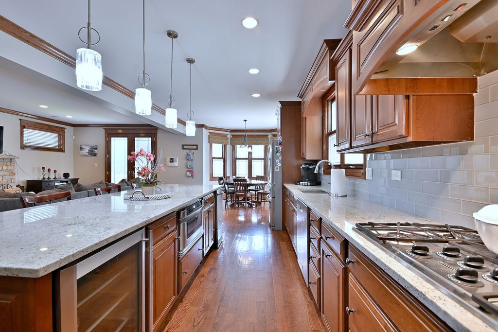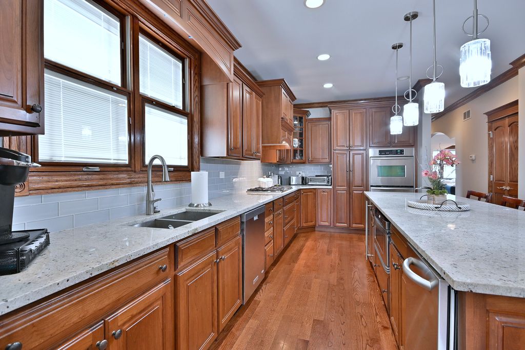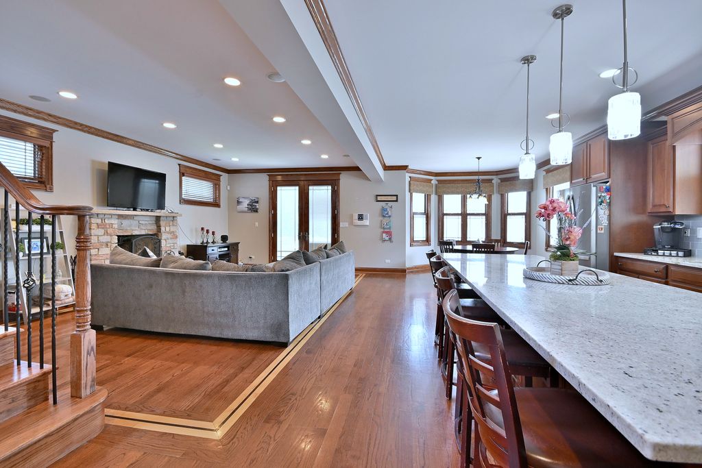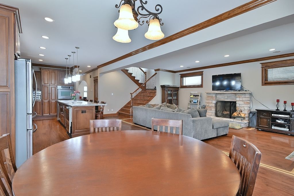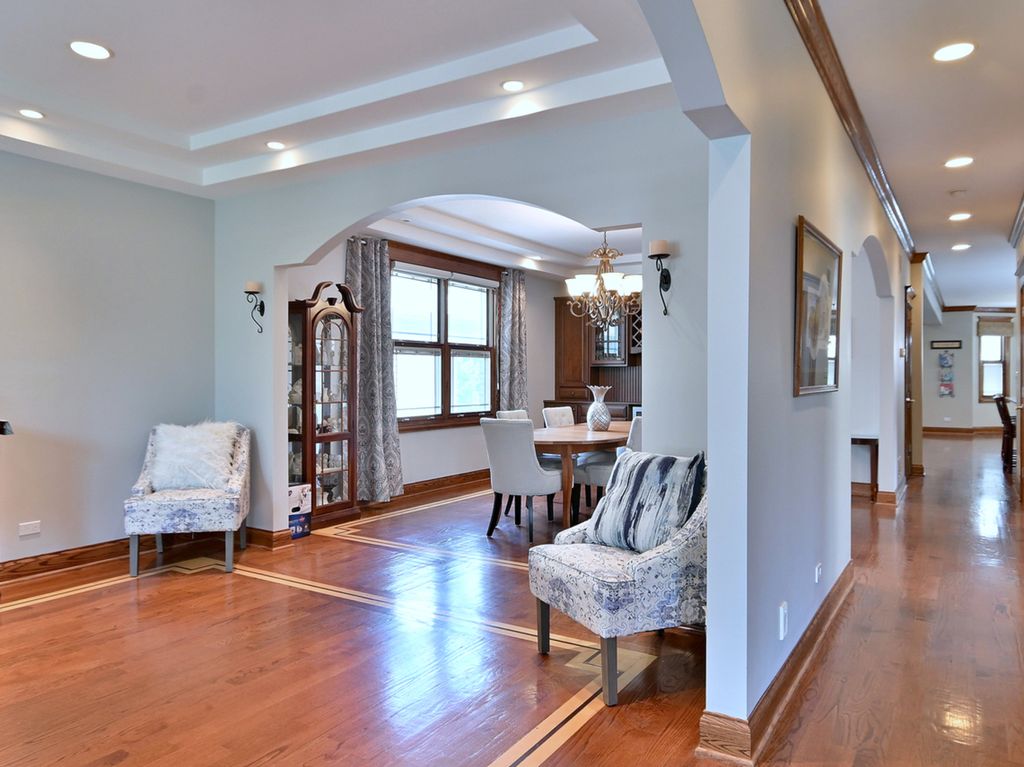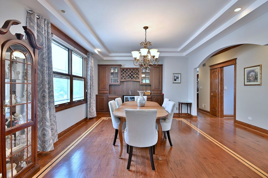 Stunning Norwood Park custom built home boast almost 4000 square feet above grade. Large living, formal dining room with custom built in Amish hutch. Huge Chef's kitchen has custom Amish cabinets, new refrigerator, 10 foot Island, adjacent eating area and 25 x 20 family room with wood burning fireplace. Rare front and rear interior oversized oak staircases, bonus three car brick garage with full staircase to second floor loft that makes for amazing storage. Custom hand crafted cove moulding throughout home! First floor office/bedroom with french doors, first floor powder room. Second floor has four amazing bedrooms, including a 20 x 18 primary, with huge primary bedroom bath, steam shower and jacuzzi, ( other bathrooms are "en-suite", and "Jack and Jill'). Large walk-in laundry room. Finished basement has 10 foot ceilings, wet bar with seating for 10, and wine refrigerator. Large Rec room area has wood-burning fireplace, and an 18 x 18 "pool-table" room, full bathroom and 6th bedroom/ "Nanny suite" or work-out room. Basement has second laundry room, and exterior access to yard. Additional amenities include a central vacuum system, a brand-new first-floor HVAC system heat and air-installed August 2024), a 200 AMP electrical panel, and an in-ground sprinkler system. Bonus three car brick garage with full staircase to second floor loft that makes for amazing storage. This extraordinary home is a short walk to the Norwood Metra, and offers the perfect blend of timeless craftsmanship, modern comfort, and thoughtful design.
