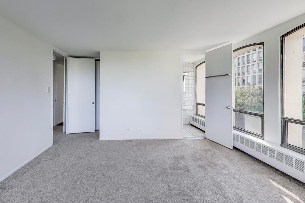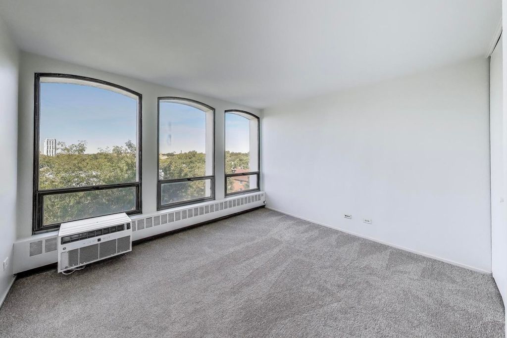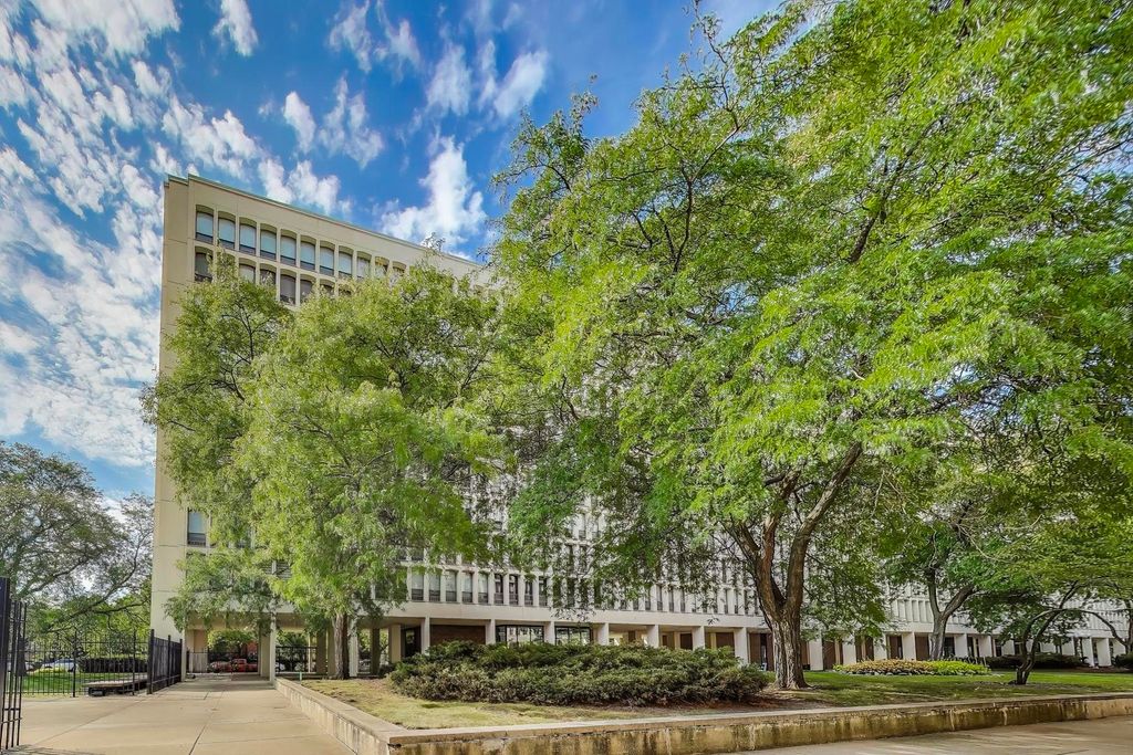 Located near the University of Chicago campus, this corner condo with beautiful sunset views looks out over a neighborhood of mature trees and university buildings. The distinctive I.M. Pei design shines through the arched windows which flood the apartment with natural light and help to blend the modernist architecture with the natural elements and open spaces below. The main living space has wood floors and ample room for both dining and living areas. The kitchen, equipped with stainless steel appliances including a brand new stove and refrigerator, has plenty of storage and counter space. Both bedrooms have brand new carpet and are roomy enough for king or queen size beds along with space for a desk and other furniture. The bath inside the primary bedroom has a full size tiled shower stall and an original porcelain sink and faucet. This pet-friendly building is perfect for investors looking to rent to University students or anyone wanting to live in the heart of Hyde Park. Enjoy easy access to the lake, vibrant nightlife, shopping, and dining while only a short commute to downtown. The building has attentive management, great security, and a large engineering staff. Extra amenities include a lovely pool, an exercise room, three parking spaces in the garage, a storage locker (#192), and an impressive courtyard anchored by a beautiful fountain. The building's assessment covers heat, water, gas, cable, internet, and on-site management. The apartment has three brand new air conditioners, is freshly painted, and ready for you to move in.