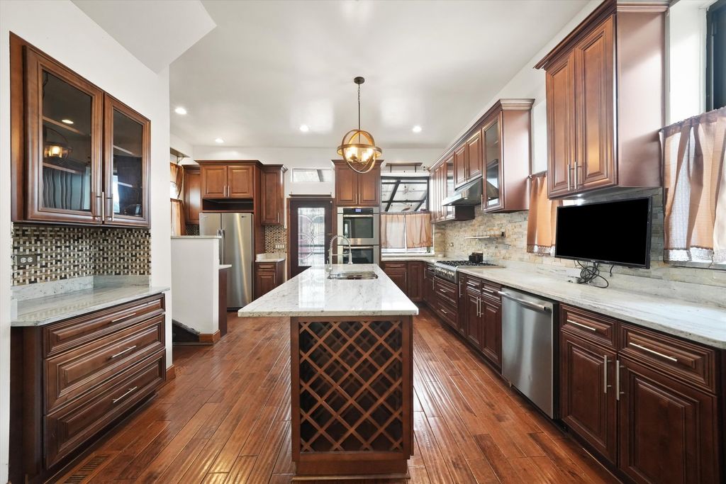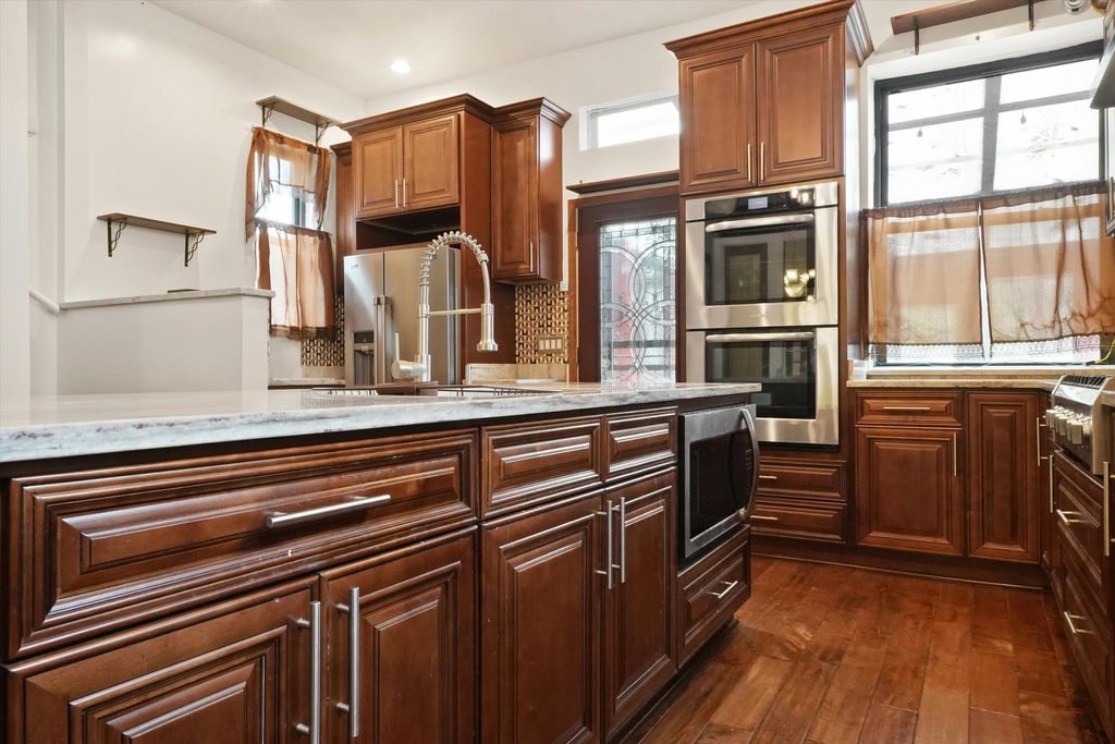 This historic Bronzeville Redstone Mansion, rehab 2020, 4500 sw. ft. offers 5 bedrooms on the 2nd level 2.5 baths, newer kitchen with breakfast bar & spacious island, granite counter tops, all stainless steel appliances stay, newer windows, roof, 2 furnaces, 2 a/c units, hardwood floors thru-out, 3 wood burning fireplaces in Living room, Family room & Master bedroom. Enclosed sunroom, deck. Finished basement with ceramic tile floor, bar, bath. 2 car garage, shed. Close to public transportation. Pre-approved buyers please.