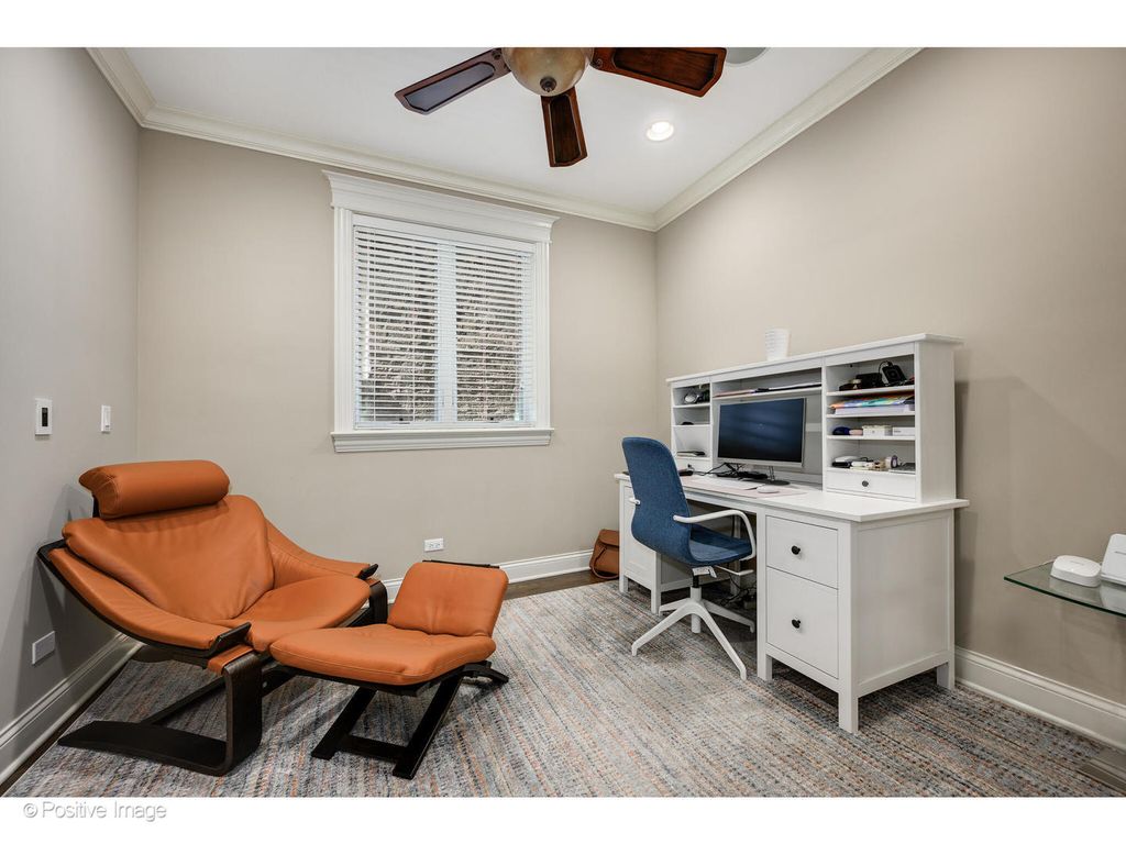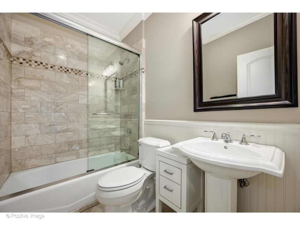 Bright and sunny 4 bedroom, 3 bath residence in the heart of Lakeview! Bright and sunny, this 2143 SQFT duplex down lives more like a single-family home than a condo. Tall ceilings, crown moldings, and elegant finishes create a sophisticated residence. Upon entry, a large living / dining room with inlaid hardwood flooring and a beautiful fireplace opens to a spacious covered terrace overlooking the patio and tree-lined Roscoe Street. A few steps up is a fabulous chef's kitchen with extensive cabinetry, island with a second sink and breakfast bar, 48"Wolf range, 42" Subzero refrigerator, pot filler, warming drawer, and granite counters. The kitchen opens to a great room with a second fireplace, dramatic beamed ceiling, and access to the back deck. The first floor also has a bedroom (currently configured as an office) and a full bath. Three bedrooms occupy the lower level, which features heated flooring throughout. A graciously sized primary suite features a wall of organized closets and a luxurious ensuite bath with a steam shower, jetted tub, dual vanity, and limestone flooring. Two spacious bedrooms, a full bath, and a laundry closet with Electrolux and GE washer dryer complete this level. One assigned parking space in the attached garage and one large storage unit included in the price. 862 W Roscoe is conveniently located within close proximity to all Lakeview has to offer. Walk to all the shops and restaurants on Broadway, nightlife on Halsted, Wrigley Field, Southport Corridor, and the lakefront. Close to Lake Shore Drive and CTA buses and trains. This is the perfect home!