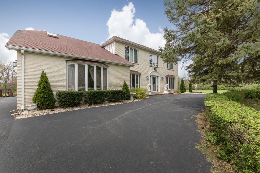 This stunning 3-story executive home, set on 8.37 acres, welcomes you with a beautiful entrance featuring a wooden staircase that leads to the second and third floors. The spacious living room flows seamlessly into the family room, offering ample space for entertaining or relaxing by the fireplace while enjoying the scenic view of nature and the deck, where deer often roam. The home includes 4 bedrooms and 2.5 bathrooms, with the potential to convert the 2.5-car garage into an additional bedroom, thanks to its large bay window. The well-appointed kitchen features a cozy breakfast area with a large fireplace and an island, making it the perfect gathering spot. In addition, there's a formal dining room that can comfortably fit a large family gathering or be converted into a home office, offering flexibility for your needs. The property also includes an unfinished basement with a mechanical room and a partially completed fireplace, providing a blank canvas for customization. A central vacuum system is available but hasn't been connected or used. The property features a 6-stall horse barn on the northwest corner. The owner previously had the property fenced and kept horses there, suggesting that a horse-riding business could be a viable option for this land. This includes equestrian training, horse rides, and similar services. While the barn requires extensive renovation, the potential for equestrian use adds another layer of opportunity. The home has recently updated systems, with a furnace and air conditioner replaced in 2021 and a new roof installed in 2018. Additionally, the property is served by an artisan spring water well. Currently zoned agricultural (A-1), the land offers great flexibility and potential. With 728 feet of commercial frontage along Gougar Rd, this property could be rezoned for commercial use or divided into smaller lots. Bring your renovation ideas or build your dream home on this beautiful property, abundant with wildlife and open green space. Rehabbers, investors, and builders-don't miss out! This property offers numerous possibilities, including rental income, a new business venture, a horse-riding enterprise, or mixed-use development with commercial frontage along Gougar Rd. It's ideally situated between two major interstate access points on IL-7/159th Street and IL-171/143rd Street, making it a prime opportunity for a variety of uses. Listed both as land and as a detached single-family residence. PLEASE NOTE: Do not walk the land without scheduling an appointment.