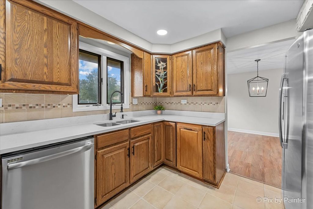 This beautifully updated 4-bedroom, 2.5-bath home combines comfort and style in a desirable location! Step inside to an inviting open floor plan where the spacious living and dining rooms flow seamlessly and the large family room features a stunning stone fireplace with a custom mantle-the perfect spot for cozy evenings. The bright eat-in kitchen has been thoughtfully refreshed with stainless steel appliances, NEW quartz countertops, sink, faucet and a ceramic backsplash. A convenient first-floor laundry and half bath completes the main level. Upstairs you'll find large bedrooms filled with natural light, including a serene primary suite with a fully renovated bath featuring a double-bowl vanity, new mirrors and faucets, a walk-in shower, and updated flooring. The hall bath has also been upgraded with a new vanity, mirror, faucets, bath surround, and flooring. A beautiful wood staircase with iron spindles and refinished hardwood floors carry the upgrades throughout the second level. The oversized 2.5-car garage includes a dedicated work space, perfect for hobbies or extra storage. Outside, the fenced backyard offers a private retreat for entertaining, gardening, or simply enjoying the outdoors. Additional upgrades include: Exterior AND interior painted, new roof, and gutters (2025), New water heater (2024), Furnace & A/C (2018), all new light fixtures, recessed can lighting, higher-height trim, doors, hardware and screens replaced throughout. Conveniently located near major highways including I-90 and I-290, easy access to shopping, dining, and entertainment at destinations such as Woodfield Mall and the Streets of Woodfield and close to Boone Meadow Park and Schmidt Park, featuring trails, playgrounds, and recreational activities.