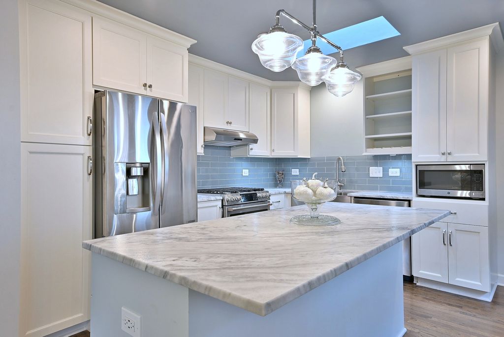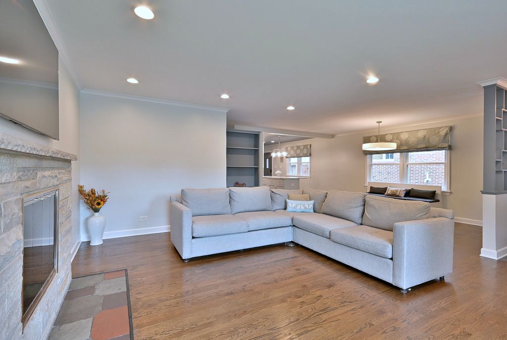 This beautiful home was formerly showcased on HGTV's House Hunters Renovation. This spacious brick ranch includes 3 bedrooms and 2 and half baths. This home has been completely updated and is in walking distance to town and train and parks. Light and bright and open, white kitchen includes a large island with seating, quartzite counters, subway tile backsplash and stainless steel appliances. Also including a separate dining area with a unique and inviting banquette bench. Hardwood floors throughout this open first floor including spacious living room with a beautiful and inviting woodburning fireplace. The spacious master suite includes a marble double vanity and tiled shower. Finished lower level includes a shiplap decorated half bath and office/music/playroom. The lower level also includes ample storage space. Updates include newer windows, electrical, plumbing, and a hot water heater. Home opens to a large back yard, patio and 2.5 car epoxy floored garage. Home is a half a block from beautiful, Marjorie Davis Park. Highly sought after Berens Park is also just a couple blocks away which includes walking path, mini-golf, splash pad, sled hill and much more. Close to schools, downtown Elmhurst, restaurants, train, movie theater and much more. Also easy access to highways. A must see!