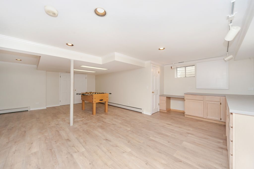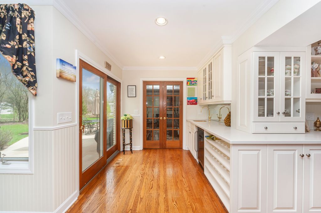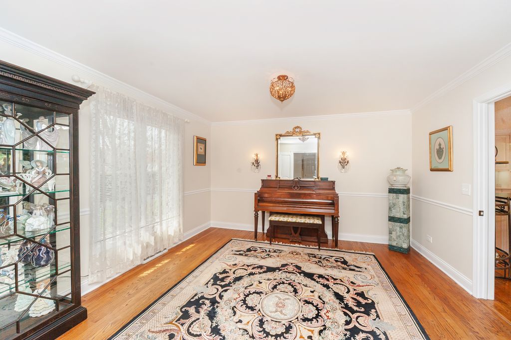Set on a wooded 3/4-acre, this 3,600+ square foot residence marries quiet privacy with magazine-worthy style. Lake Forest is celebrated for its lakefront, parks, and architecturally rich neighborhoods, and this address enjoys that same gracious, green setting with easy access to town, train, and shoreline. The showstopper is the spectacular kitchen, anchored by a picture-window bay framing the backyard and gardens. An elegant sunken living room opens directly to the patio, extending living and entertaining outdoors. A first-floor bedroom provides a refined work/reading space and can flex as an office space as well. Upstairs, the skylit primary suite is a retreat with a separate office, sitting room, and a lovely bath. With three baths up, the second level easily supports busy routines and guest stays. Downstairs, a huge, light-filled finished basement adds a versatile rec area with a wet bar and bath, new flooring, and abundant storage, think media, fitness, hobby, or play. Updates include: new gutters (2022), basement updates and drainage (2022), basement floors and painting (2024), partial new roof and new skylights (2023), new attic insulation (2024). Come see the light, the volume, and the setting in person, homes with this combination of land, layout, and livability don't linger in Lake Forest. Welcome home!