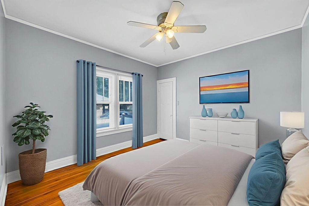 Enter into this charming 3 bedroom, 2 bathroom home in the Joliet Cathedral Area. Arched doorways, built in cabinets, and lots of charm! The cozy enclosed front porch with bench swing is the perfect spot to start your day. Kitchen has white cabinets, stainless appliances, backsplash, and new countertops. Reverse Osmosis is installed. The basement includes a bar area, Murphy bed, theater room, and full bathroom - new carpet and vinyl floors. Recent updates include: Plumbing replaced from street to home (2021), New Water Heater (2020), New Roof, Siding, Facia, Soffit, and Gutters (2020), All new plumbing (2018), New Electrical Panel (2016), and Refinished Hardwood Floors (2015). Projector and screen do stay.