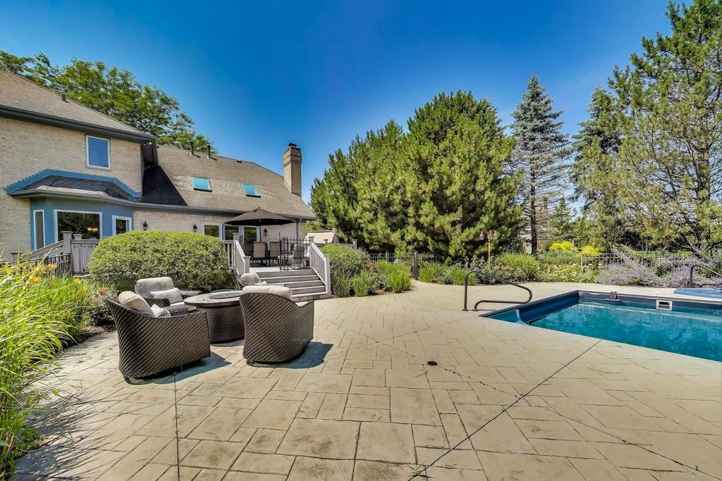 Set on a beautifully private and professionally landscaped lot in the sought-after Bridle Woods subdivision, this timeless brick residence offers a perfect blend of comfort, elegance, and outdoor luxury. The backyard is a true retreat, complete with a sparkling in-ground pool and spa, an expansive patio, a spacious deck, and lush gardens framed by custom hardscaping-ideal for entertaining or relaxing in style. Inside, the main level features a flowing, functional layout designed with both everyday living and hosting in mind. The formal living and dining rooms offer defined yet connected spaces, while the updated kitchen opens seamlessly to a sunlit breakfast area and a dramatic two-story family room-creating a warm and welcoming heart of the home. Upstairs, the serene primary suite offers peaceful views, dual walk-in closets, and a spa-inspired bath with separate vanities, a soaking tub, and a large walk-in shower. Three additional bedrooms and a shared hall bath complete the second level. The full, unfinished lower level offers high ceilings, a bathroom rough-in, and endless potential-whether you're dreaming of a home gym, theater, rec space, or simply extra storage.
