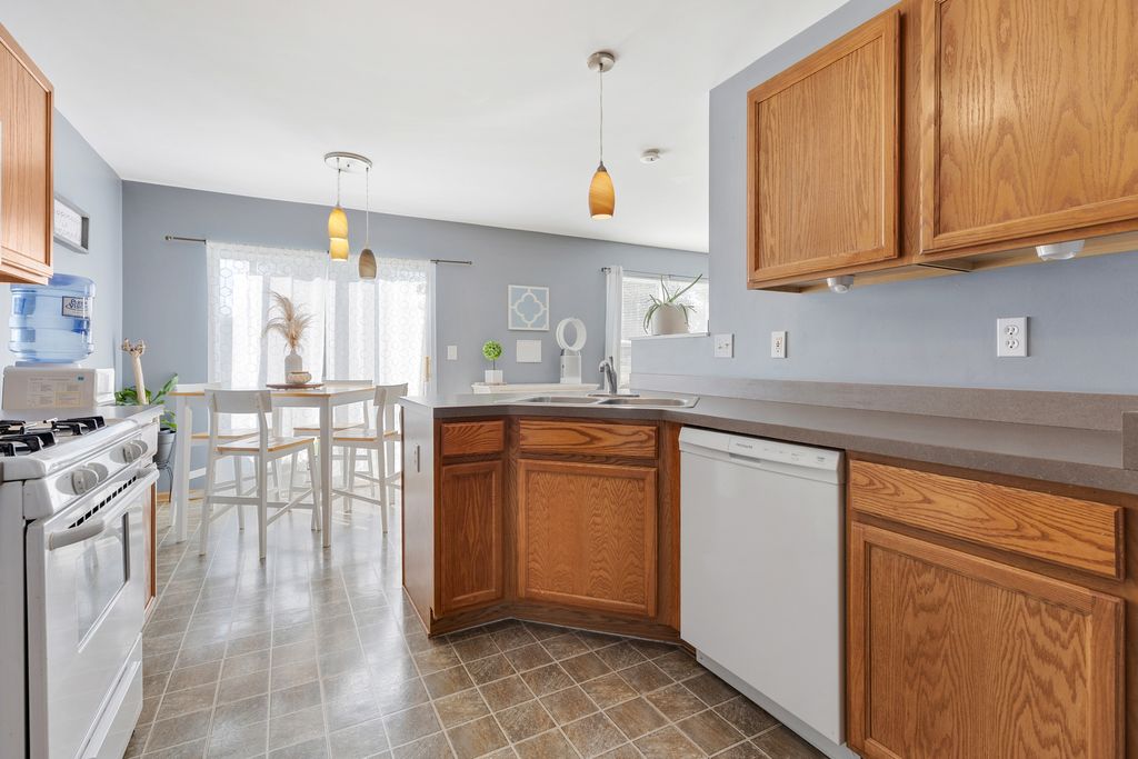 Find your heart in this SPOTLESS 2 STORY TOWNHOUSE with FINISHED BASEMENT. Large, OPEN FLOOR PLAN with room to roam. There is a tranquil, ROLLING LAWN beyond the patio with NO HOUSES BEHIND. Spacious Living Room flows to a beautiful Kitchen with eating area and glass doors to the patio. Main floor mud room and LAUNDRY! 2 generous bedrooms and a separated full bath upstairs. The primary bedroom has a WALK-IN CLOSET and the beautifully sunny 2nd bedroom will delight you! Enjoy the convenience of a 2-CAR ATTACHED GARAGE and a finished basement. The basement could be used for a third bedroom suite because it has it's own bathroom. This is the PERFECT townhouse!