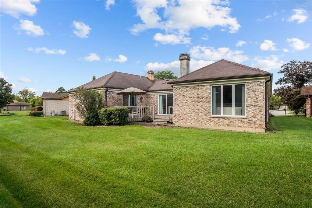 This spacious and bright ranch-style home in maintenance-free Villas North offers an open floor plan perfect for both relaxing and entertaining. Step through the double doors into a sunny foyer with a vaulted skylit ceiling and ceramic tile flooring. The large sunken living room, formal dining room, and separate family room with fireplace and built-in entertainment center provide abundant space for gatherings. The adjacent white kitchen features granite countertops, an eating area, and access to the backyard through sliding doors (also accessible from the family room). Enjoy the beautifully landscaped yard with a large patio and wooden deck-perfect for outdoor living. The oversized primary suite boasts two walk-in closets, a dressing area with double vanity, and a private bath with separate shower, tub, and commode. A generously sized second bedroom, full bath, laundry area, and ample closet space complete the main level. Additional highlights include an attached two-car garage and basement.