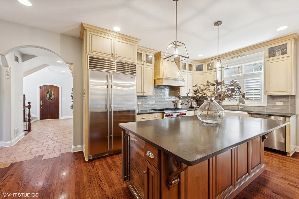 Exceptional opportunity in the coveted Madison grade school neighborhood. This spacious residence, situated on a wider-than-typical 59-foot wide lot, offers a uniquely larger living experience. The street presence has an emphatic sense of arrival - courtesy of the porte cochere. There are six bedrooms, and five and a half bathrooms, ideal for a growing family. The open floor plan seamlessly connects the kitchen, breakfast room, and family room, creating a super functional space for everyday living and entertaining. Enjoy special outdoor spaces including a screened porch, primary suite balcony, and a paver brick patio with fireplace.
