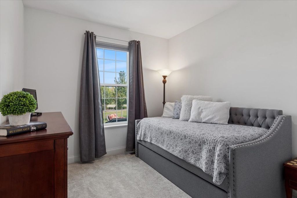 Gorgeous ranch home in the highly desirable Talamore Adare in Huntley with a rare full unfinished basement! Nestled on a cul-de-sac, this fantastic Napa model home is ready for immediate delivery and offers privacy galore with views of the stocked fishing pond and open space. Open floor plan, 9' ceilings, engineered hardwood throughout main living spaces and neutral decor. Stunning finishes include sleek custom window treatments of plantation shutters and Silhouettes, custom closet organizers in both bedrooms and new front storm door. Highlighting $61K in builder upgrades and smart home features; WI-FI certified Home Design - Ring Video doorbell and alarm system, Smartlock, Smart thermostat and air exchanger that circulates new air throughout the home every 17 mins. Sparkling white kitchen with Subway tile backsplash, Quartz countertops, soft-close drawers, GE Profile appliance package, upgraded Refrigerator with a Keurig, vented microwave with convection option and custom spice rack. Napa model offers flexibility with living room/den/study, spacious foyer, upgraded stair railing leading to the basement and generously sized laundry room with utility sink. Primary bedroom upgrades boasts tray ceiling, ceiling fan and upgraded full bath with 1/2" surround glass shower, oversized tile, dual vanity with comfort height and custom light fixtures. Second bedroom is perfect for guests or a wonderful office/den. Full bath with tub/shower and custom height vanity. Sliding door leads to brick paver patio and serene views from every angle. Professional landscaping and brick paver walkway in front complete this custom look! Doubling the size of your home, this 1428 sq. Ft. of space is ready to go. With large window wells, custom window well covers and each fitted with an egress ladder; this allows for endless options. Andare Talamore offers Resort-Style living with it's Active adult 55+ community! Association dues include: lawn care, snow removal, 8,000 SF clubhouse, Fitness center, 2 swimming pools with water slide and splash pad area, picnic pavilion with outdoor fireplace, tennis court, pickle ball court, party room with kitchen, game room, meeting room, and playground. Crushed limestone walking paths and catch-and-release fishing pond just complete the package! This is a lifestyle!