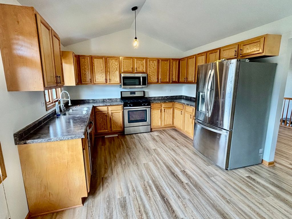 Beautifully updated 4BR/2.5BA home featuring fresh paint, new floors throughout, a finished basement, large laundry room, and walk-in closets in three bedrooms. Enjoy a refreshed bathrooms, fireplace room, painted deck, skylight, whirlpool tub, and spacious vinyl-fenced backyard, perfect for family living and entertaining. MOVE IN READY!