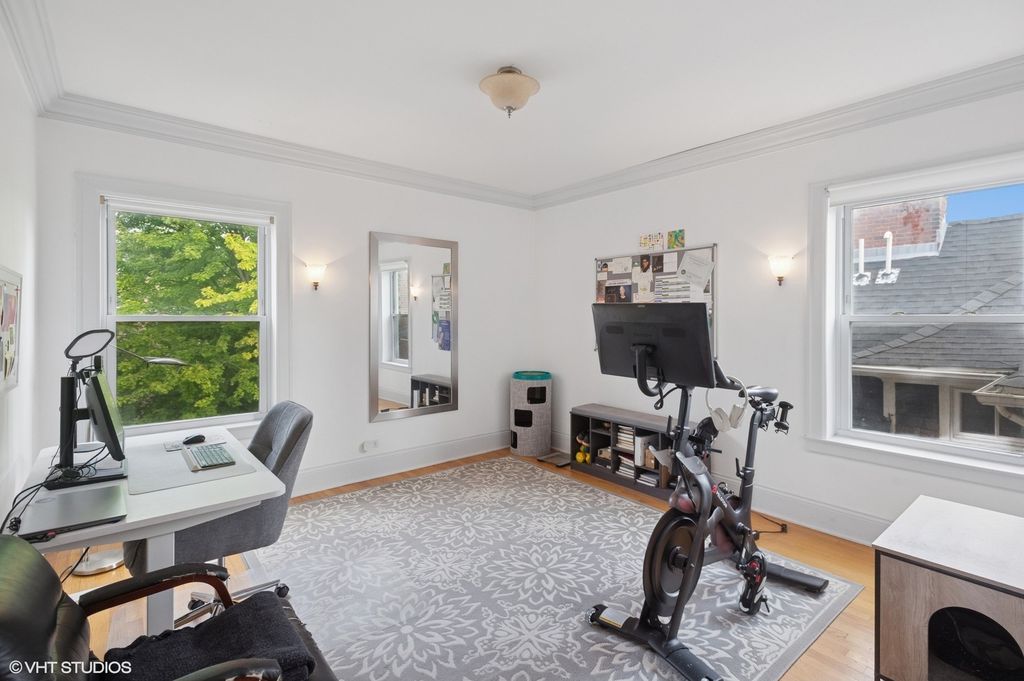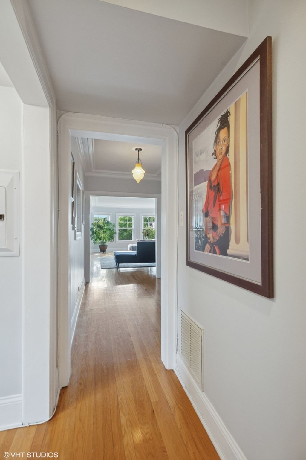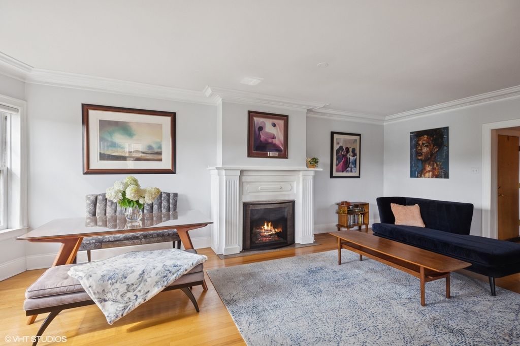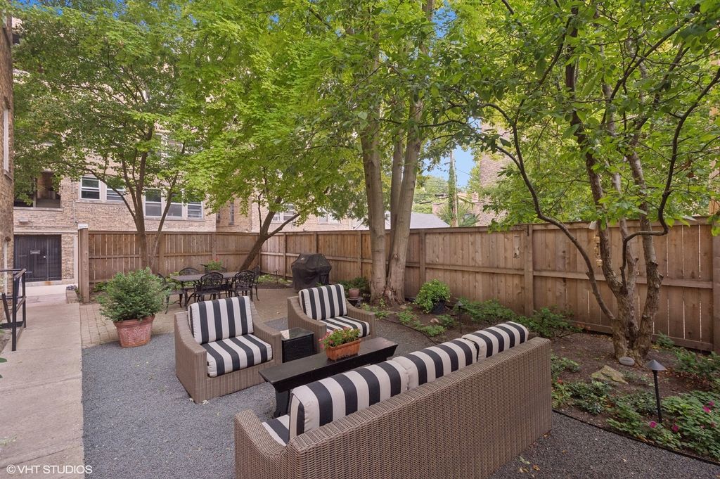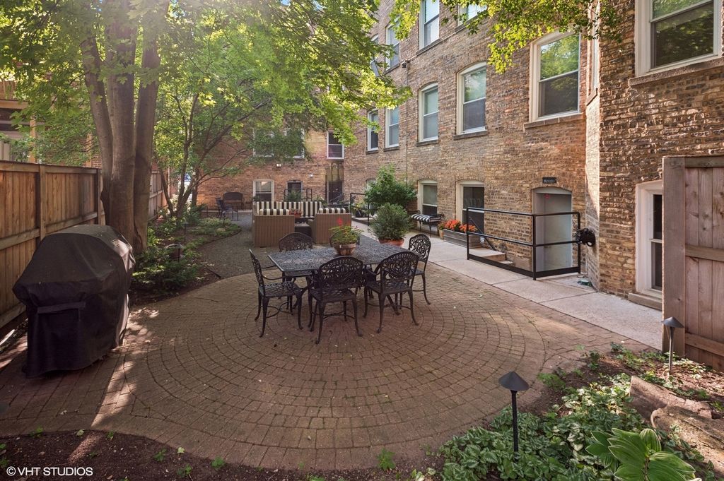 The truth is, life is best at the top ... floor! This sun-drenched corner, top-floor condo in a vintage building with modern amenities like central AC and in-unit laundry in SE Evanston blocks from the lake lives like a single-family home. Open the doors of the charming Juliette balcony and/or the Bay windows in the open floorplan living room - dining room and take in refreshing lake breezes and serene sunset views. The versatility of the large living space means endless room configurations and the comfort of knowing you won't hear any footsteps above you. Off of the LR and opposite stained glass, is a butler's pantry with ample storage that leads you to the lovely kitchen. Down the hall, the first bedroom is a jewel box that can also be a library, office or study complete with built-in California Closets custom shelving. The second bedroom fits a king-size bed and is currently set up as an office and workout area. The jumbo primary bedroom, where sunrises fill the space, has enough space for a king-size bed, couch and more, so you'll love making this your end-of-day landing pad. The marble ensuite full bath rounds out the unit. Out back is the most inviting fenced shared patio with a grill, table and chairs and couches, and more small sitting areas scattered throughout. Well maintained building with healthy reserves 3 blocks to Lee Street Beach and blocks to the El and Metra. Across the street from Lincoln Elementary and a short walk to Nichols Middle School -- and also to coffee shops, restaurants, bakeries, bookstores, boutiques, grocery shopping (Jewel, Trader Joe's, Binny's and Whole Foods) and more! **Ask the listing agent about available parking for rent across the street.
