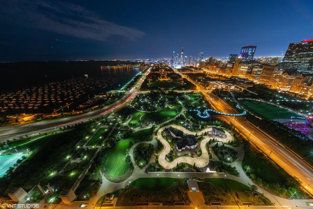 Residence 3505, an absolute stunner and the best in "show" for the Spring Market with forever views of Lake Michigan, Maggie Daley, Grant Parks, on center with Buckingham Fountain, Architectural Wall of old and new buildings down Michigan Ave and city skyline scenes, Museum Campus, Soldier Field, the states of Indiana and Michigan and beyond through this unit's floor to ceiling glass curtain walls. Residence 3505 features 9.7" ceilings, brand new 7" wide plank white oak floors throughout this entire home, a foyer that instantly greets you with an irreplaceable and incomparable view of the most coveted parts of the city. Freshly painted, freshly painted, new powder room with large format, rectangular tile by Porcelonsa, in unit full size, stackable washer/dryer, open kitchen concept with culinary vented hood, gas cooktop, built into cabinet oven, recessed microwave, under mount sink with disposal, 1.25" straight edge quartz counters, Flat panel Snaidero cabinets, frosted glass panel upper cabinets, full height glass mosaic kitchen tile backsplash, GE Monogram stainless steel refrigerator, seating area at breakfast comfortable for four. Separate dining room and living space accommodations. Unobstructed views from every area, every window of Residence 3505 with no building neighbors from side to side. Sumptuous and best primary suite out of all of the one bedroom floor plans 340 On the Park has to offer featuring California King bed and plaid of bedside tables, additional bedroom furniture layout, walk in closet and additional linen closet, dual vanity, separate shower, terrazzo shower basin, frameless glass, and soaking tub, Dornbracht plumbing fixtures, Toto toilets, ivory under mount sinks, dressed in all natural composite stone. 340 on the Park is a full amenity building including a 24 hour doorman, onsite management and maintenance, 25th floor amenities include 75' indoor lap pool, whirlpool, sauna, steam rooms, locker rooms, 4,000 square foot gym with Pelotons and other state of the art equipment, Wintergarden, private conference/dining room, complete caterer's kitchen, sun terrace with two gas grills, furniture for dining, lounge chairs for sunning. Dry cleaners, outdoor pet relief area, short cut to Mariano's and the Village Market nearly attached to the building, pedway connection. One garage heated parking space #P4-32 available for $40,000. Bring on your most discriminating buyer in this market of emaciated inventory. Another project built by Related Midwest, first Leed Certified Residential Building in the City of Chicago and the Gem of Lakeshore East with over $3M in reserve, never having a special assessment, with a reputation that proceeds itself and a location that is second to none in the Lakeshore East community.