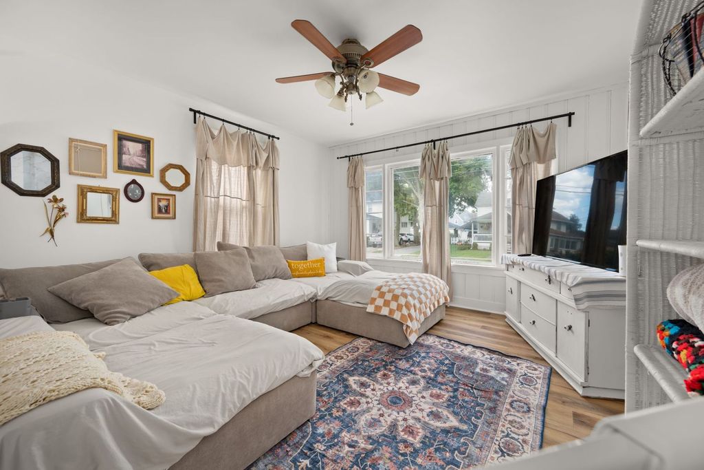 2 HOUSES ON 1 LOT! UNIQUE OPPORTUNITY! THIS PROPERTY OFFERS INCREDIBLE FLEXIBLILTIY - A SMART INCOME-PRODUCING INVESTMENT, THE OPTION TO LIVE IN ONE HOME AND RENT THE OTHER OR PERFECT MULTIGENERATIONAL LIVING! THE POSSIBILITIES ARE ENDLESS! Don't miss the rare chance to own two separate houses on one spacious lot , just minutes from charming downtown Sycamore. The 1440 sq. ft. main houses has striking new luxury vinyl plank floorings throughout, complemented by creamy white walls that create a atmosphere of simple elegance and timeless style. At the heart of the home, the kitchen shines with crisp white cabinetry accented by sleek black hardware, a spacious center island, stainless steel appliances, and a convenient pantry area with closet storage. A separate dining room offers plenty of space for gathering, while the inviting living room is filled with natural light from the large picture window. A flexible room on the main level can serve as a possible 5th bedroom or den and is conveniently located next to a half bathroom. The vibrant front porch is the perfect place to unwind after a long day's work, complete with ceiling fan for comfort and plenty of windows that let in light and fresh air, creating a cozy retreat to enjoy! The master bedroom features a charming farmhouse style ceiling fan, luxury vinyl plank flooring, and closet creating an true oasis. Three additional bedrooms are complemented by a fully renovated hall bathroom, featuring dual vanities with medicine cabinet, a classic clawfoot tub with shower, elegantly tiled walls, bold black and white floor tiles and a stylish sliding barn door arounds off the main home. The second home is tucked away providing a true sense of privacy. This 890 sq ft. adorable, charming home welcomes you with an inviting living with creamy white walls throughout. The kitchen is fully equipped with a pantry, stainless steel appliances, white cabinetry, and ample counter and storage space. The first floor master bedroom is generously sized with a hall bathroom just across the hall. Upstairs, a bright sitting room opens to a generously sized second bedroom, providing abundant space for relaxation, work or play. The property features a 2 1/2 car detached garage and a 10X12 metal shed providing ample storage. Both homes offer patios with pea gravel perfect for relaxing. The most surprising feature is the .60 acre yard, whose size you would never imagine from the street, complete with both a privacy fence and chain link fence. Sycamore School District. Close to parks, and downtown Sycamore area with shopping, restaurants, and more! If you're seeking a close proximity to all that Sycamore has to offer, look no further! Make this your next move!