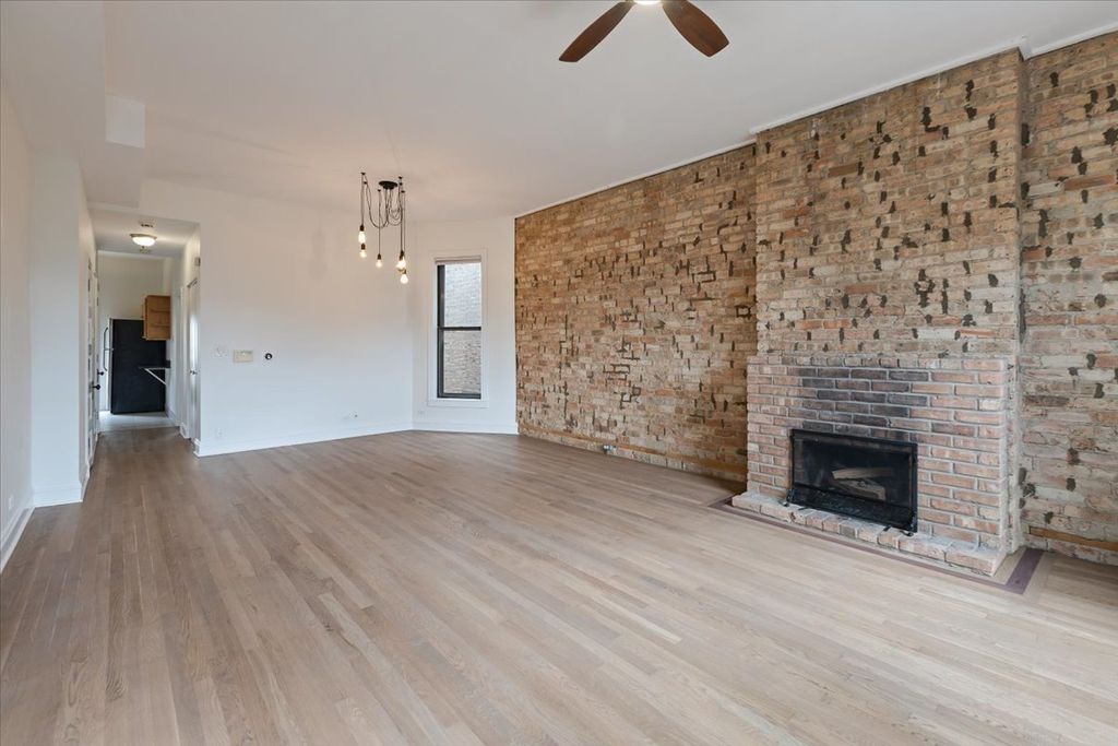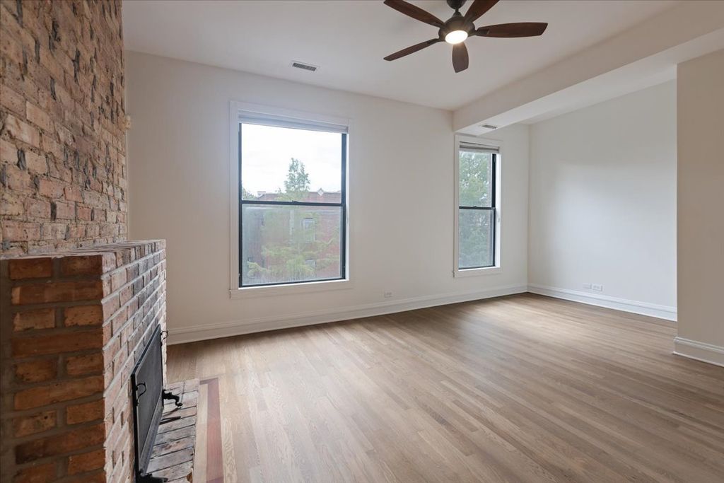 Experience elevated city living in this luxuriously refreshed top-floor 1 bedroom / 1 bathroom condominium in the vibrant Lakeview/Wrigleyville neighborhood. This sun-drenched home exudes character and style with soaring ceilings, expansive windows, exposed brick walls, and a wood-burning fireplace that creates an inviting focal point. The interiors have been thoughtfully enhanced with freshly refinished hardwood floors (Sept. 2025), crisp new paint (Sept. 2025) and an updated bathroom featuring a newly tiled floor, refinished bathtub, chic vanity with designer mirror and brand new toilet (Sept. 2025). The spacious living room includes a dedicated office nook, while the large dining area is anchored by a stunning chandelier. The kitchen has been beautifully upgraded with stainless steel appliances, granite countertops, modern flooring, and a newly replaced dishwasher (Sept. 2025), offering the perfect space for both everyday cooking and entertaining. A generously sized bedroom boasts an organized walk-in closet, while in-unit washer/dryer hookups and central AC/heat provide everyday convenience and future flexibility. HVAC and AC Condenser installed May 2018). Step outside to your private deck overlooking a lush landscaped courtyard, perfect for morning coffee or evening gatherings. Additional highlights include an oversized private storage unit, bike room and extra free laundry facilities in the building basement. Pet-friendly and ideally located, you'll enjoy being just three blocks from the Addison Red Line, steps to dining, shopping, nightlife, Wrigley Field, and the lakefront. Rental parking is available nearby, with street parking available with added benefit of required 24/7 zoning permit - Zoned 383. This home seamlessly blends modern upgrades with timeless character-an exceptional opportunity to live in one of Chicago's most sought-after neighborhoods.