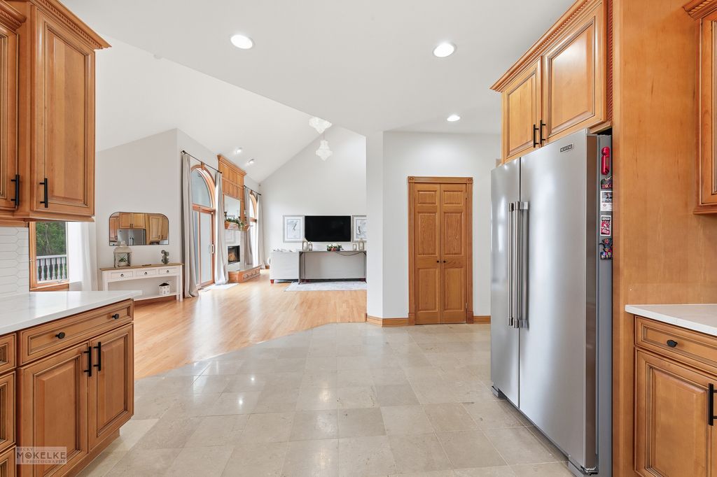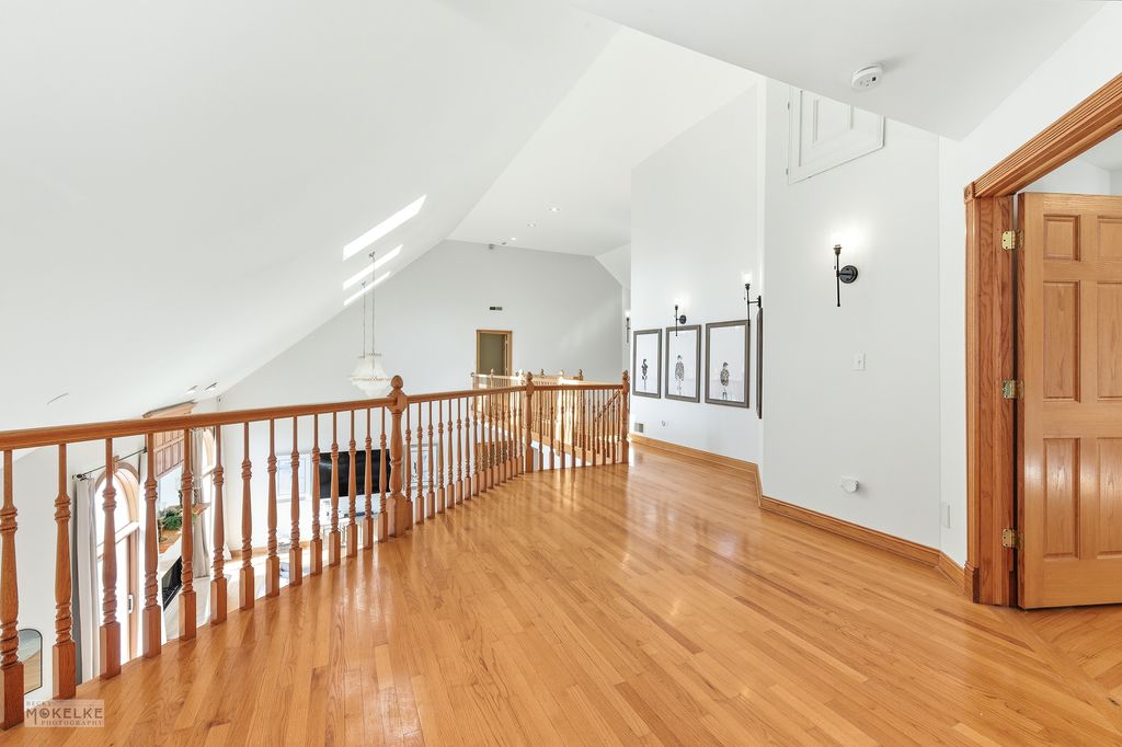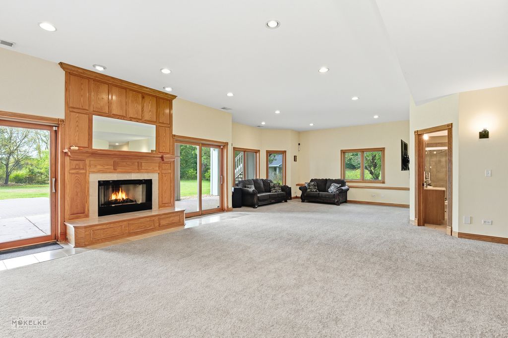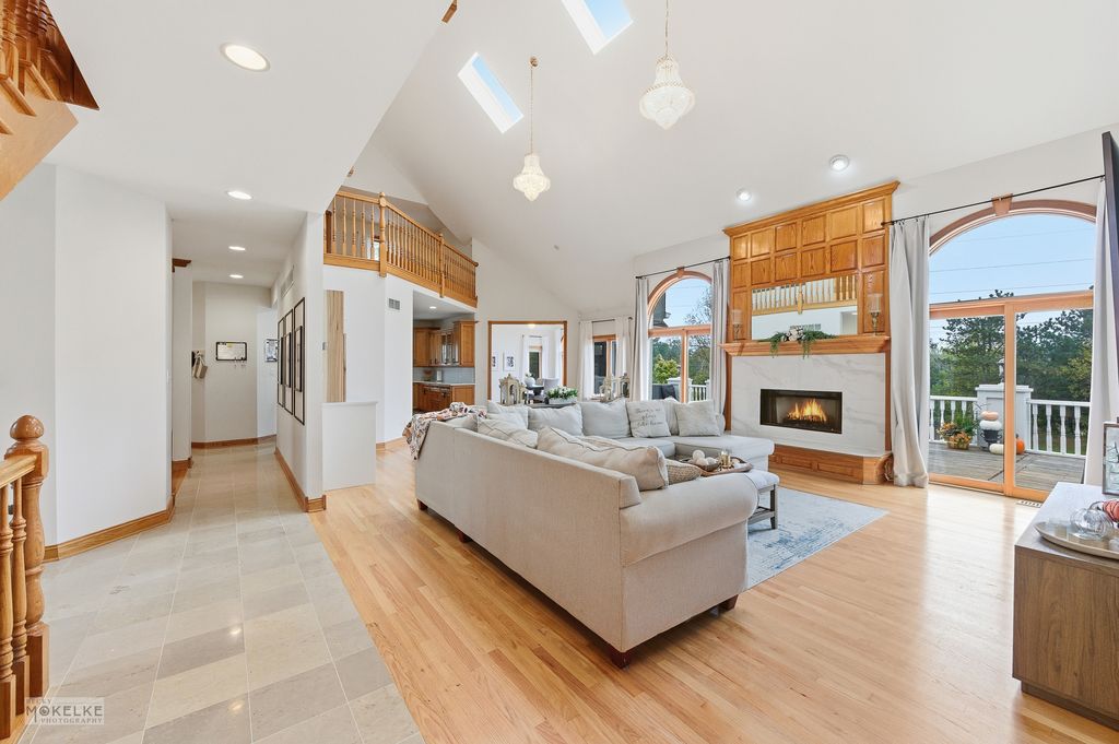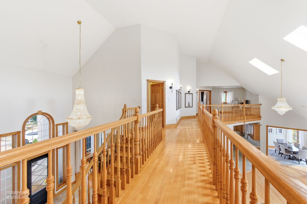 Stunning custom built 6-bedroom, 5.1-bath home located on a quiet cul-de-sac within the desirable Foxmoor Estates neighborhood~The circular brick driveway & tiered fountain promotes an impressive & inviting curb appeal~Tucked away on a premium, wooded 1+ acre parcel framed w/lovely mature trees, assorted annuals & fruit trees (including peach, plum & apple)~Experience spectacular panoramic views year round from the expansive main balcony & the private balcony off of the primary suite~Gather the family around the new paver patio w/firepit for your outdoor fun & enjoyment~Many recent improvements & upgrades have been made both to the interior & exterior of this spacious home, creating the perfect blend of thoughtful, timeless design mixed w/modern comfort for exceptional everyday living~Hardwood flooring & new marble flooring throughout the open-concept main level~The grand 2-story foyer showcases an incredible voluminous ceiling & elegant curved staircase~The foyer opens to the formal living room & to the fantastic 2-story Great Room~The Great Room features newly refinished hardwood flooring, a beautifully renovated fireplace, skylights & a custom new beverage bar w/mini fridge, perfect for entertaining family & friends~The Great Room opens to both the kitchen & the sun-filled dining room w/fireplace & refinished hardwood flooring~The updated Dream Kitchen offers lovely maple crowned cabinetry w/gorgeous new quartz countertops, tile backsplash & new upgraded SS appliances, sure to bring out the inner chef~The main level also offers an amazing office w/library & a spacious bedroom & en suite bathroom w/dual vanities, jetted tub, separate shower & 2 walk-in closets~You will appreciate the convenient 1st floor laundry room w/newer washer/dryer & new butcher block countertop w/sink~The beautiful hardwood flooring continues throughout the 2nd level of the home~Relax & retreat to the very special primary suite w/volume ceiling, a romantic fireplace, 2 walk-in closets & private balcony~The primary spa-like bathroom offers dual vanities, a large jetted soaking tub & separate shower~The 2nd level also offers 2 additional en suite bedrooms, a gallery wall & a cozy loft area~The elegant curved staircase continues to the fabulous, finished walk-out basement, featuring an open-concept family/entertainment room w/fireplace, a full 2nd kitchen, a recently renovated theatre room, a 4-season room (currently used as home gym), a full bath & 2 more bedrooms~This finished basement is perfect for large gatherings, an in-law arrangement or multi-generational living~This home is well-equipped w/an efficient multi-zoned heating/cooling system (each floor w/separate heating/cooling system), a newer whole house water filtration system & a reverse osmosis system for the main kitchen~Attractive side load 3-car garage w/new service door & sprinkler system~Convenient location, close to schools, parks, shopping, dining & golf course!