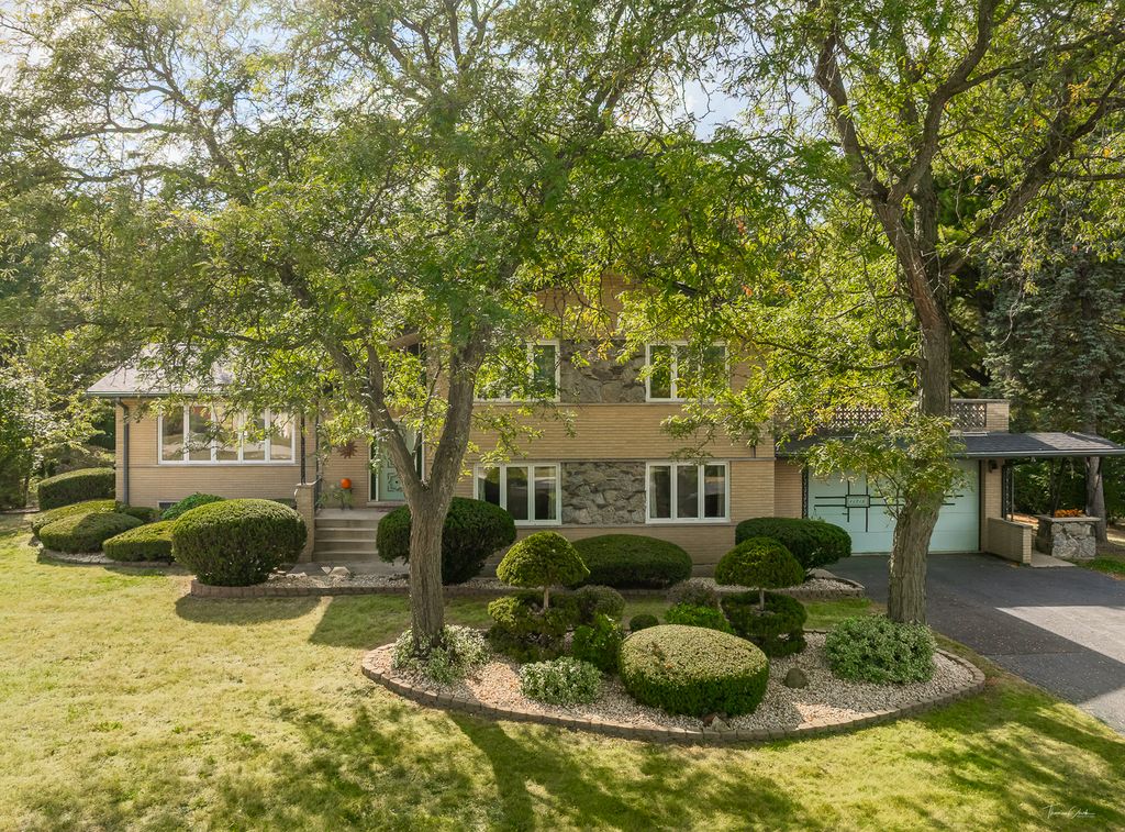 Incredible opportunity in desirable Hillcrest Estates. Custom-built home by original owner is set on a sprawling near HALF acre lot in a well-established neighborhood. Highly functional and versatile floor plan is optimal for entertaining and everyday living, that includes RELATED LIVING quarters with its own exterior access. Inviting entryway greets you, spacious sun-drenched living room with large picture window overlooks front lawn. For more formal occasions, a separate lovely dining room with an elegant chandelier is waiting to host festive gatherings. The generously sized eat-in kitchen with abundant cabinetry and counter space, is perfect for preparing delicious meals around the dining table. An open staircase leads you up to the second level bedrooms. The primary bedroom retreat features a private full bathroom and a deep walk-in closet. Three additional bedrooms have plenty of closet space and share a full hall bathroom. One bedroom with glass sliding doors, opens to a huge ROOF DECK, displaying awesome outdoor wooded views. Expansive lower level boasts a relaxing family room with a beautiful stone fireplace with GAS LOGS, built-in bar, and Half-bathroom. Venture outside thru the glass sliding doors to a custom oversized WOOD DECK area, concrete patio with built-in bench, for seamless indoor-outdoor entertaining for guests and family. Amazing backyard views to enjoy year-round surrounded by lush mature trees, with privacy and tranquility. FLEXIBLE LAYOUT on lower level offers so much, ensuring plenty of room to grow and adapt to lifestyle needs. Take advantage of the additional full living area with its own bedroom, bathroom, kitchen and private entrance. This unique setup is ideal for RELATED LIVING or IN-LAW arrangement. The finished WALKOUT basement adds another dimension to this home for entertaining. It features a large recreation room, dinette eating area, a workshop for home projects, built-in shelves and storage, along with an EXTRA STOVE & laundry room around the corner. Enormous driveway provides ample parking for 6+cars. Outdoor backyard SHED is valuable for additional storage. Roof-2018, Furnace, A/C 2016, Newer Garage Door. Embrace the balance of nature and convenient sought after location, minutes from vibrant downtown Lemont, METRA, shopping, expressways, entertainment, schools including Blue Ribbon Lemont H.S. This home has much to offer- and so much space to make it uniquely your own! Sold AS IS- ESTATE SALE.
