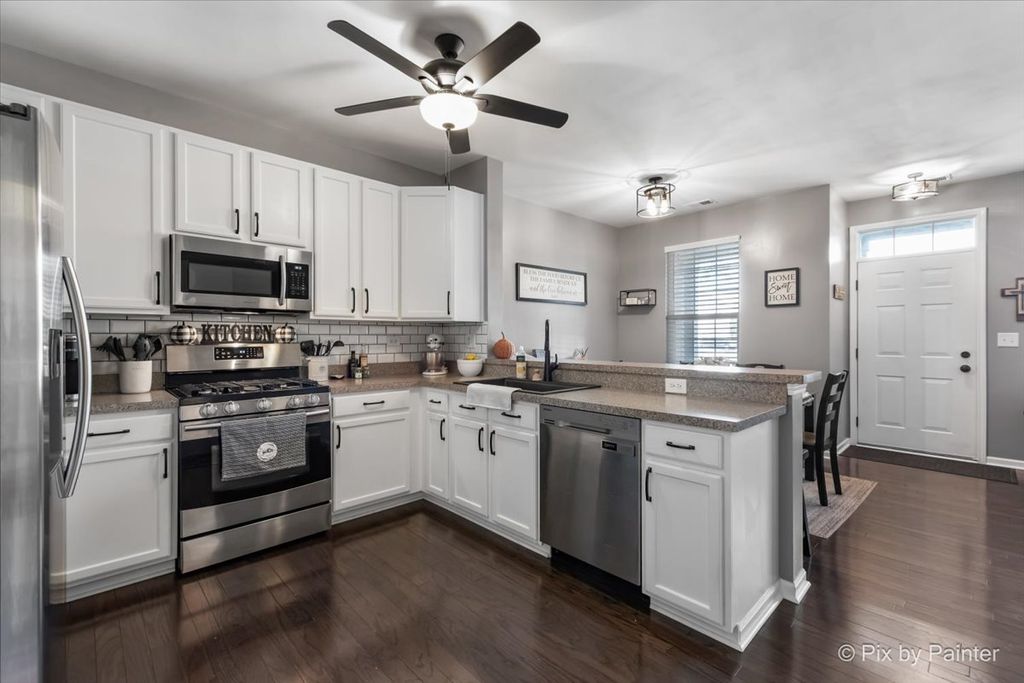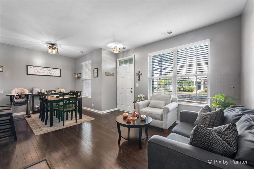 Welcome home to this beautifully updated 2-bedroom, 1.5-bathroom two-story townhome offering modern comfort and convenience! The main level features an inviting living room with a cozy gas fireplace and gleaming hardwood floors throughout, perfect for relaxing or entertaining. The kitchen boasts all stainless steel appliances, plenty of cabinet space, and an open flow to the living area. Upstairs, you'll find a spacious family room, convenient second-floor laundry, and two comfortable bedrooms. Recent updates include a new HVAC system installed in 2023 and numerous other improvements throughout, providing peace of mind for years to come. Enjoy the ease of an attached 2-car garage and a fantastic location close to trails, parks, ponds, shopping, schools, and vibrant downtown Oswego. This move-in ready home truly combines style, function, and location-don't miss it!