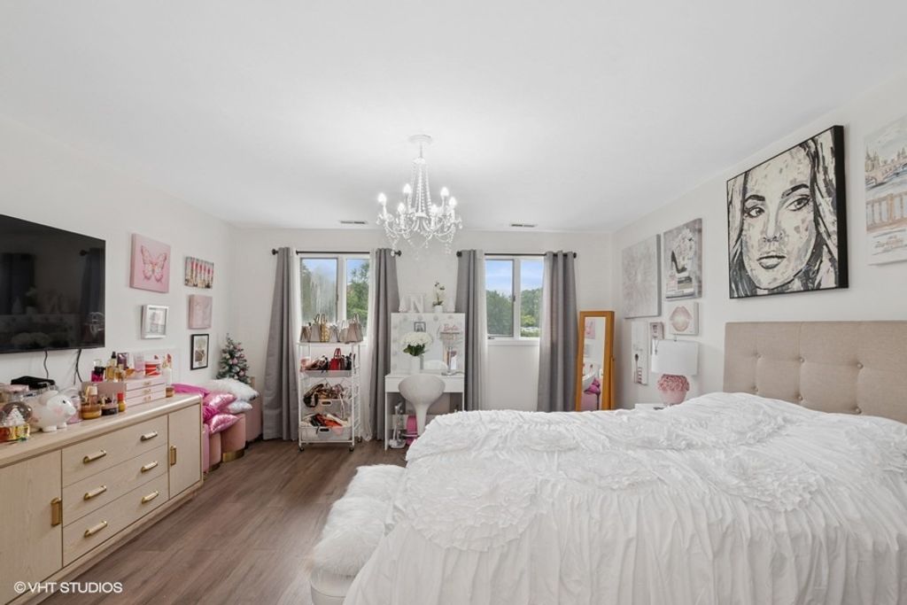 Welcome to this beautifully maintained condo offering comfort, style, and scenic views-perfectly situated just steps from the serene trails and nature of Lake Katherine! This spacious home combines thoughtful updates with functional living space, all within a community that includes a clubhouse and pool. Step inside to find a light-filled living room featuring luxury vinyl flooring, elegant crown molding, a cozy fireplace, and a sliding glass door that leads to a private balcony overlooking peaceful green space-ideal for relaxing or enjoying your morning coffee. New roof installed in 2024 along with newer light fixtures installed throughout the unit. The adjoining dining room also boasts crown molding and flows seamlessly into the eat-in kitchen, which is equipped with stainless steel appliances, a stylish tile backsplash, solid corian countertops, a new ceiling fan, and a newly installed faucet. The in-unit laundry room includes convenient cabinet storage, adding to the home's practicality. The spacious primary bedroom offers a walk-in closet and an en-suite bathroom with a full shower. Two additional well-sized bedrooms provide flexibility for guests, family, or a home office, along with a full hall bathroom. 1 car detached garage space included along with plenty of convenient guest parking. Enjoy all the benefits of maintenance-free living in a desirable community with resort-style amenities and direct access to walking paths, nature, and the lake. There is a chairlift in the common areas to the 2nd floor units. This condo is the perfect blend of modern comfort and natural charm-don't miss your opportunity to make it yours!