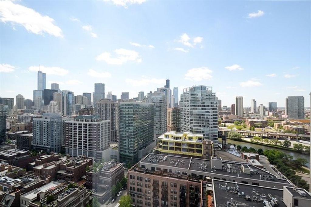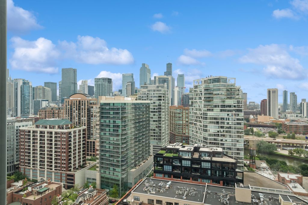 The Montgomery-rarely available, south facing "09 tier" - 2 bedroom / 2 bathroom featuring sought after postcard views that frame the city skyline, Chicago River, and Ward Park from 10-foot floor to ceilings windows with custom solar and blackout shades. Your stunning home features: oak hardwood floors throughout, stunning custom designed Brookhaven kitchen with chocolate cabinetry, tropic brown granite countertops/backsplash and new Samsung stainless-steel appliances plus a large pantry closet. Your luxurious primary suite has two custom outfitted closets, a large neutral spa style bath with a dual sink vanity, separate shower with built in seat and 6-foot soaking tub plus a linen closet. The second bath is designed in a neutral white palette also with a linen closet. Enjoy your other wishlist features such as a new in-unit GE washer/dryer, custom outfitted closet systems, recessed and designer lighting throughout and a prime indoor heated parking spot #234, located on the 2nd floor near available for sale. Monthly assessment includes all utilities except electric: AC/Heat, high speed internet, dish network, gas for cooking and clothing dryer and so much more such as 24/7 door staff, onsite management, fitness and hospitality rooms, private dog park, landscaped, resident only, private park with grills and lounging furniture, bike rooms, additional storage for each owner plus the perfect location in River North: steps to public transportation- CTA bus + brown/purple lines, restaurants, shopping, grocery stores, river walk, easy access to expressways and so much more. Come home today!