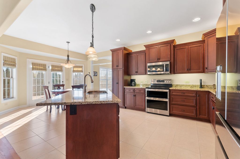 Welcome to 24563 River Crossing Drive, Shorewood! This magnificent ranch offers nearly 2,600 square feet of beautifully designed living space-one of the largest ranch floor plans in the neighborhood! Step through the front door and fall in love with the open-concept layout and custom upgrades throughout. A private office with elegant French doors sits at the front of the home, perfect for remote work or study. The formal dining room flows seamlessly into the spacious family room and gourmet kitchen-ideal for hosting holidays and celebrations. The timeless hardwood floors and vaulted ceilings create an inviting and airy feel. The kitchen features abundant custom cabinetry with crown molding, granite countertops, stainless steel appliances, and an oversized island. Just off the eat-in area is the bright Florida Sunroom, a versatile space that can serve as an additional family room, play area, or cozy retreat. The luxurious primary suite offers a spacious bedroom, walk-in closet, and private bath complete with dual sinks, a jetted soaking tub, and a walk-in tile shower. Two additional bedrooms and a full bath are located on the opposite wing, providing privacy for family or guests. The main-floor laundry room includes a utility sink and custom cabinetry for added convenience. The full, unfinished basement-already roughed in for a bathroom-offers another 2,600 square feet of potential living space. Recent Updates: * Trex deck (2024) * Ejector pump (2022) * Sump pump (2021) * Garbage disposal (2021) * Whole-house generator * Alarm system * Sprinkler system. Located just down the street from the brand-new Shorewood Community Park, this home also offers Minooka high school and a low HOA fee. Don't miss your chance to own this exceptional property in a highly sought-after neighborhood!