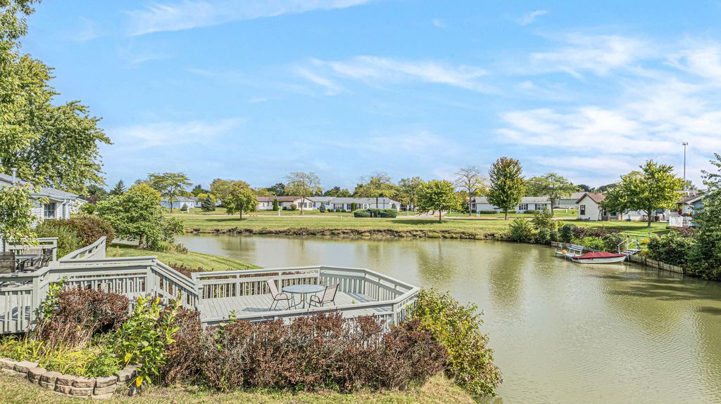 Welcome to Saddlebrook Farms, an inviting 55+ community in Grayslake offering low-maintenance, single-level living. Enjoy stunning lake views from almost every window in this open-concept home! Huge front porch welcomes you - enter to a large living/dining area. To the left you'll find a bedroom, study/office, full bath with skylight and sumptuous Primary suite! Primary suite offers a large bathroom with walk in shower, walk in closet and skylight. Bedroom area has a bay window with lake views! To the right is an open kitchen, sitting area, island and enclosed porch. Laundry room has a slop sink, window overlooking your beautiful deck and again those lake views! Access the multi tiered deck from the porch, or laundry room for stunning sunsets and relaxation. There is a 2 car garage and beautiful landscaping. You will love all the amenities at Saddlebrook Farms in addition to a convenient location, there is a fitness center, miles of walking trails, bocceball courts, community center, fish stocked lakes, horseshoe pits, resident run Victory Garden and planned social events. Come see what Saddlebrook Farms has to offer the active adult. This is where comfort, connection, and carefree living come together. You'll love it here!